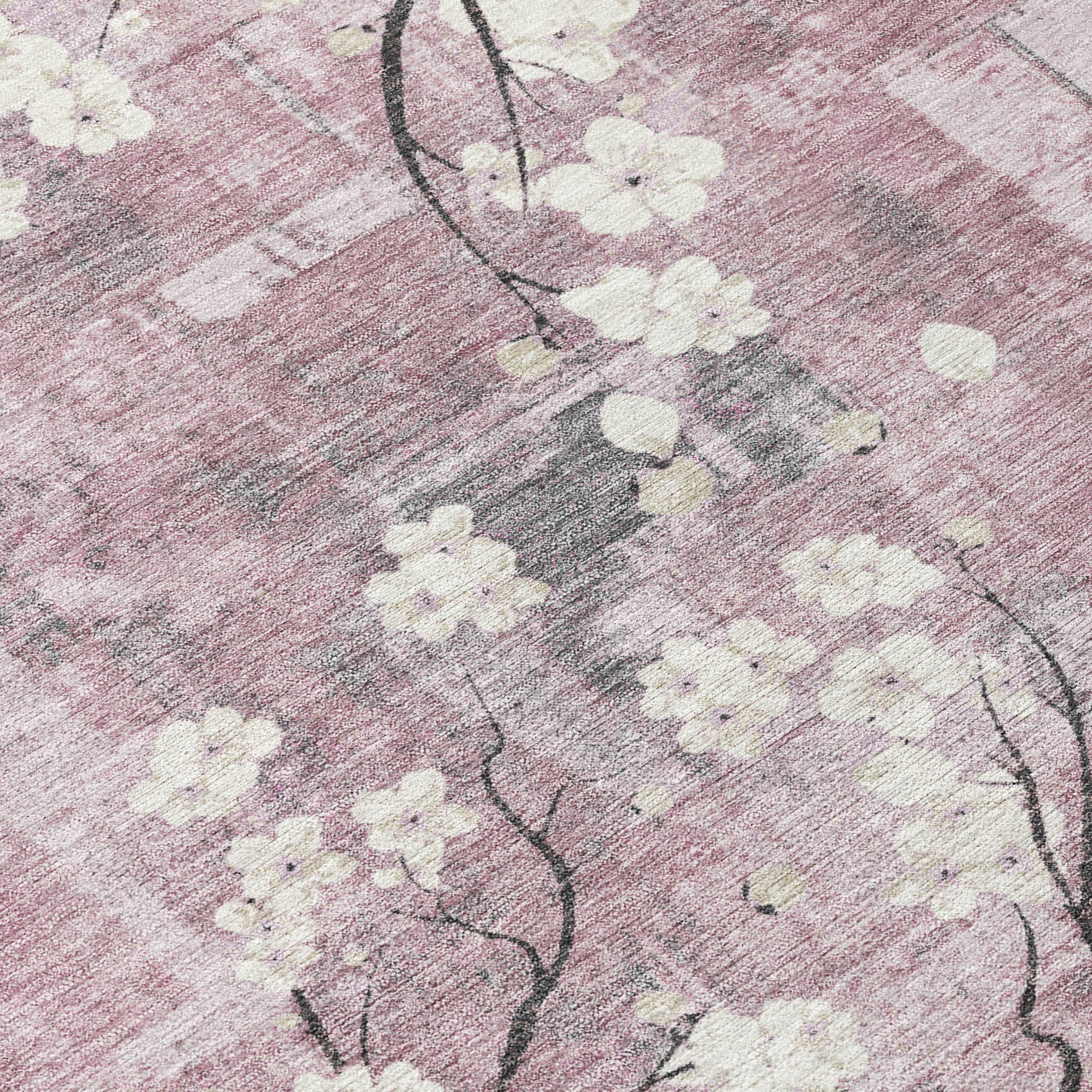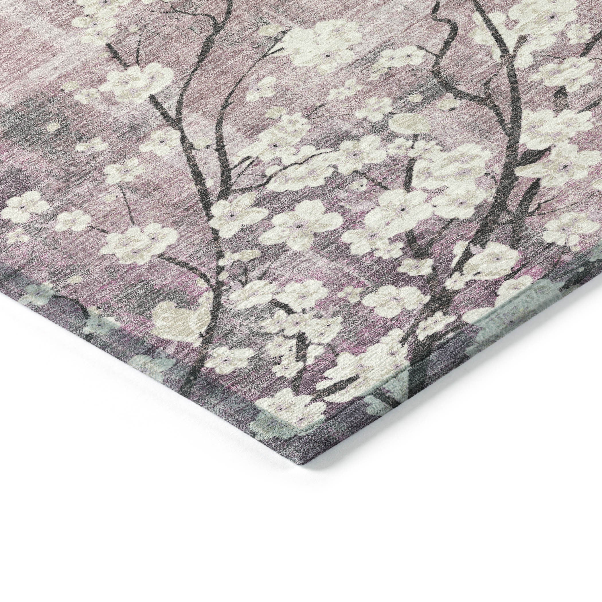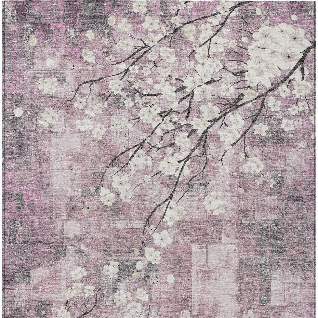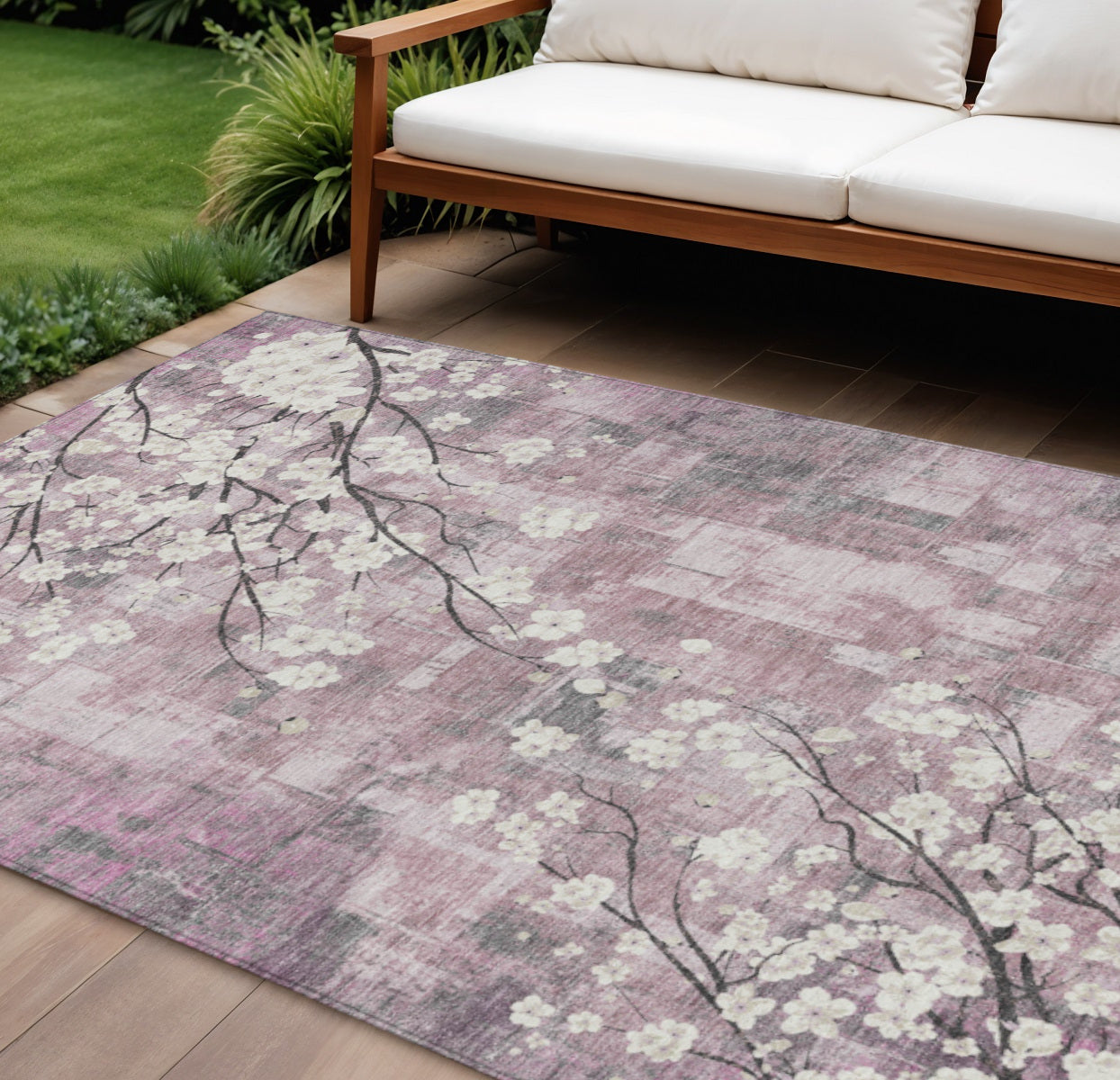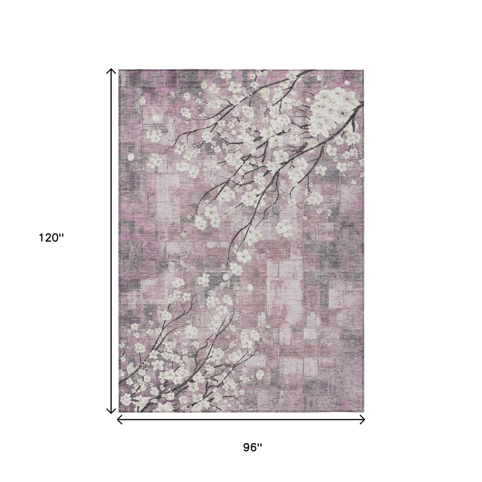 8' X 10' Blush Ivory And Gray Floral Washable Indoor Outdoor Area Rug