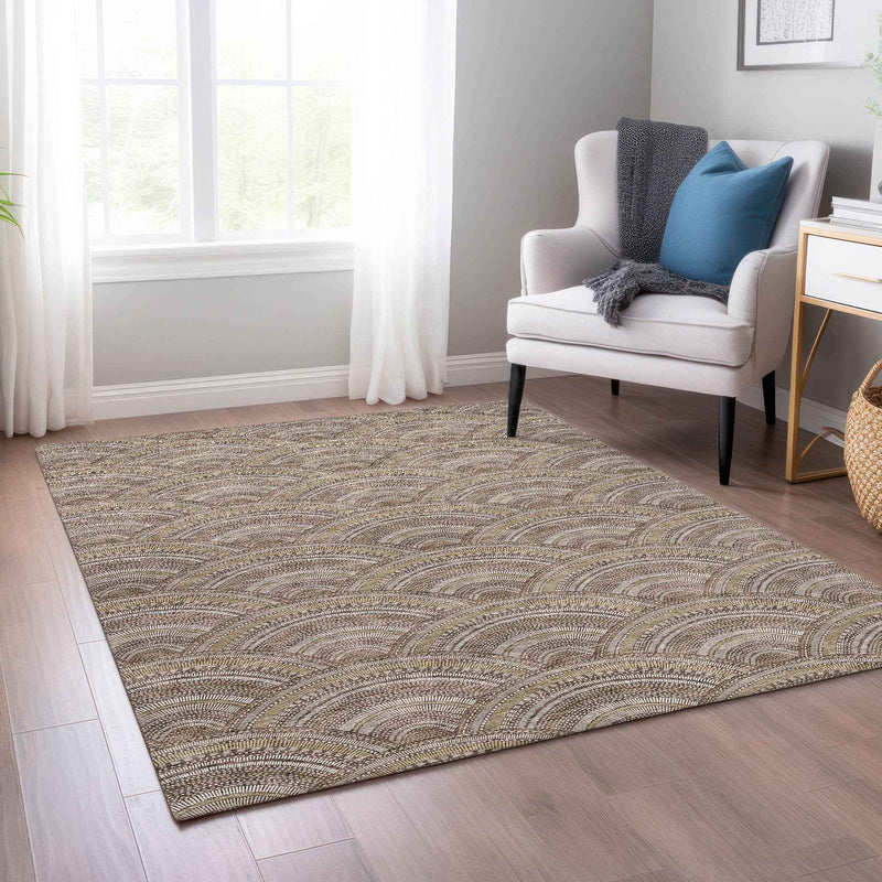 This 8-foot x 10-foot brown beige and taupe geometric washable indoor outdoor area rug, is a great way to add warmth to a room. This rectangle shaped rug features a geometric design that will work well both indoors or out. A classic shape marries with good looking design for your living room, hall, bedroom, porch, patio, or poolside. Ideal for outdoor spaces or high traffic areas with kids and pets, this rug is made from heavy duty polyester that is stain resistant to help repel water, dirt, and stains. Makes a great way to dress up your patio, porch, or poolside, but also works well as a durable and easy to maintain option in the kitchen, family room, or mudroom. 96-inch h x 120-inch w x 0.19-inch d.