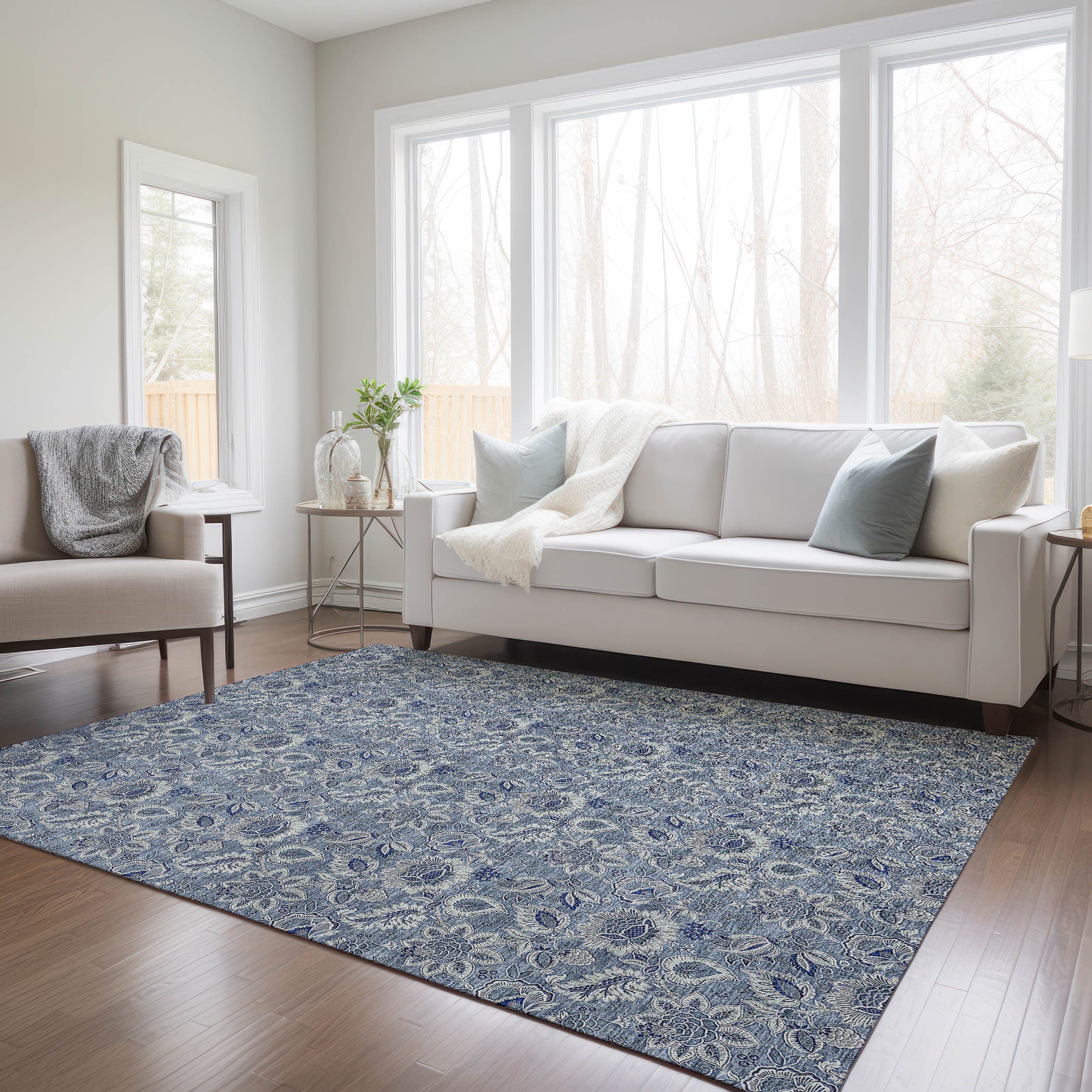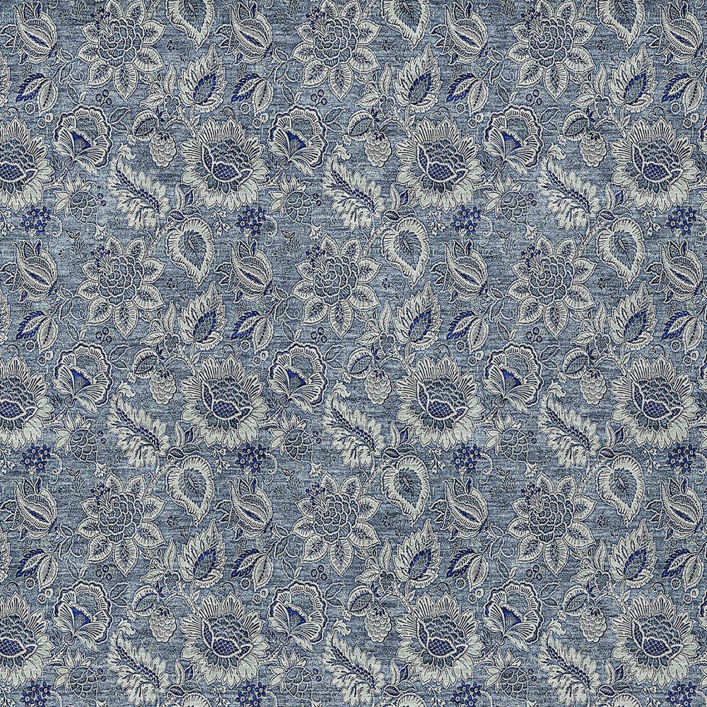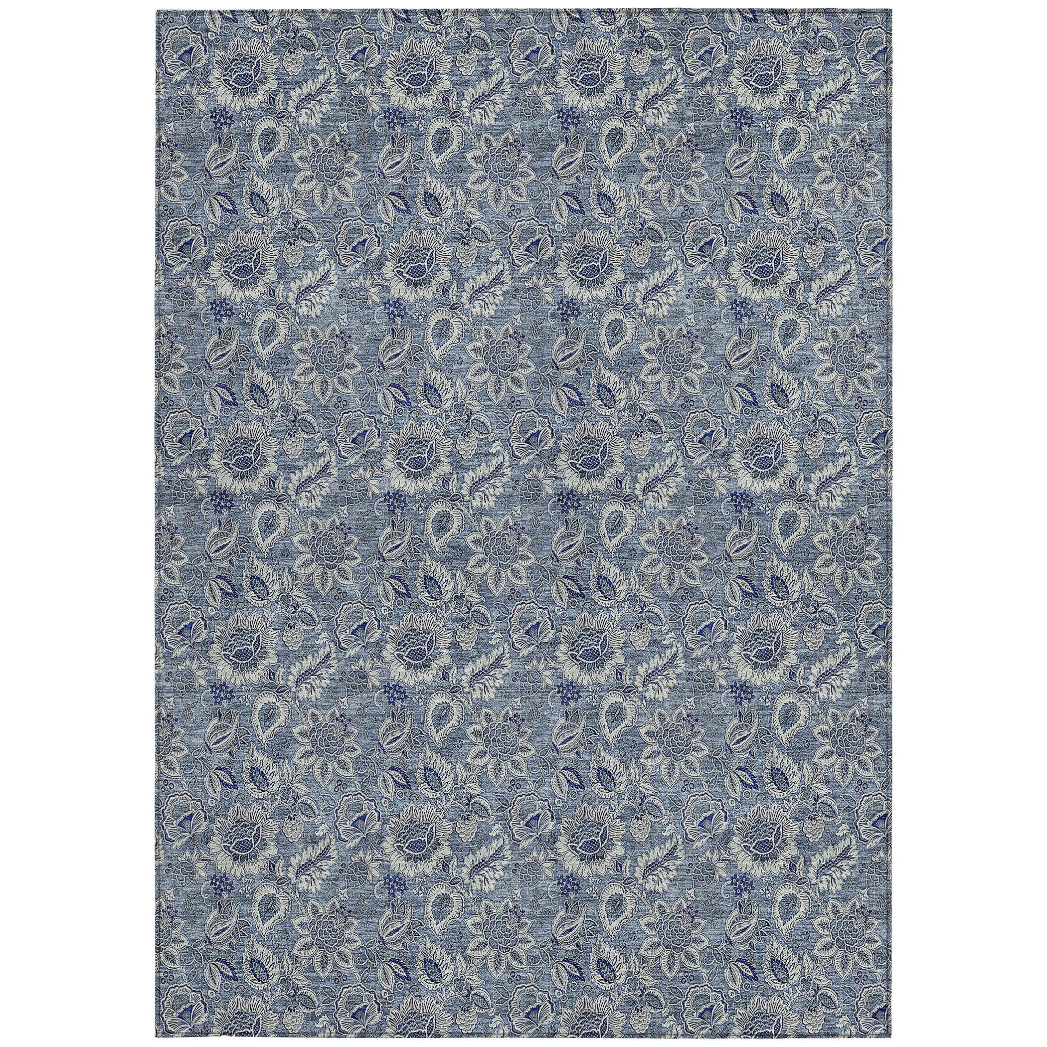 8' X 10' Denim Blue And Navy Blue Floral Washable Indoor Outdoor Area Rug 跳到内容