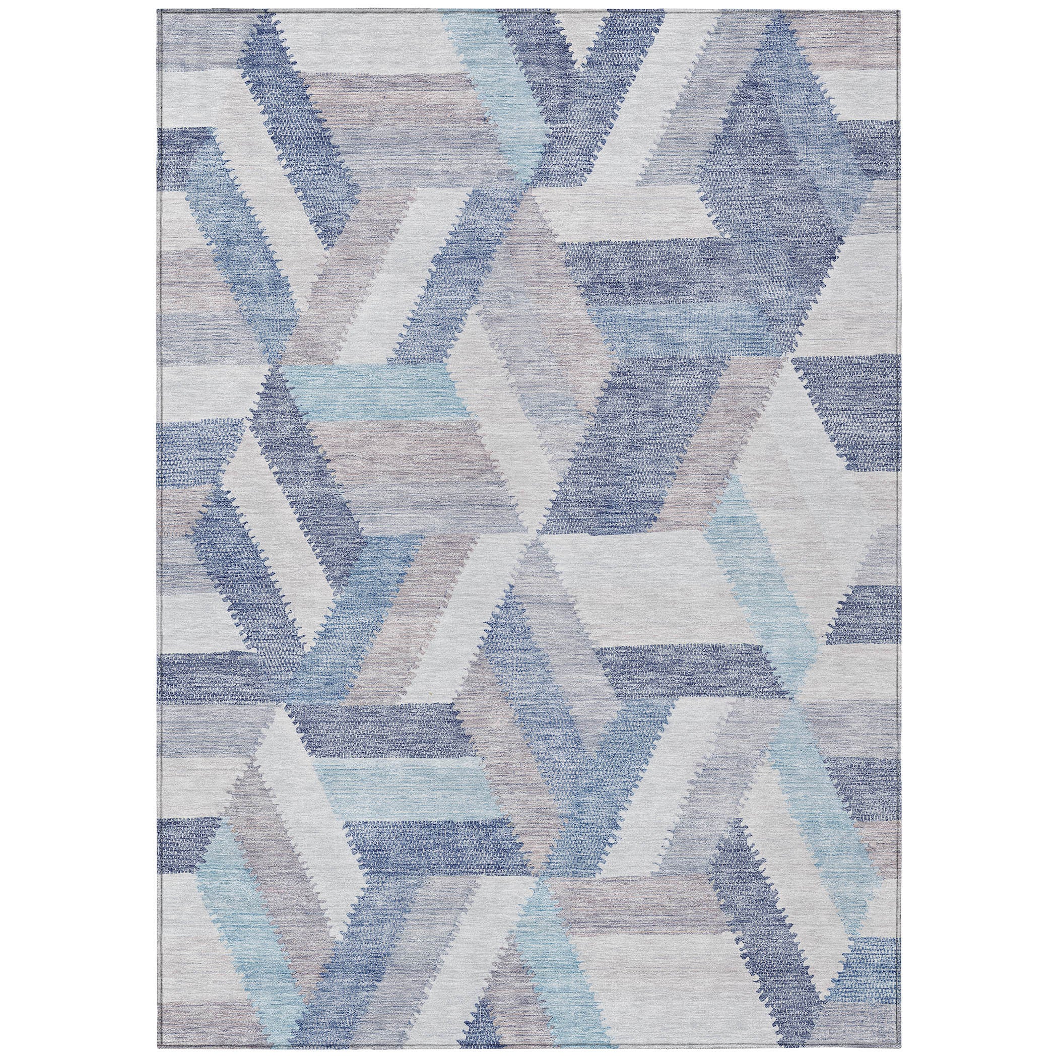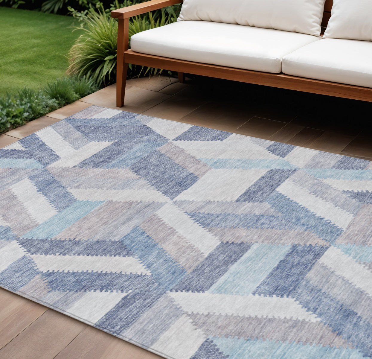 8' X 10' Denim Blue Geometric Washable Indoor Outdoor Area Rug