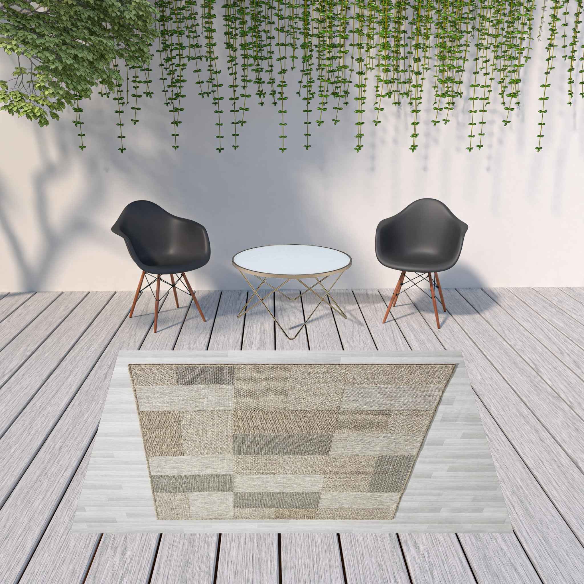 This 8' x 10' gray geometric handmade indoor outdoor area rug, is a great way to add warmth to a room. This rectangle shaped rug features a geometric design in gray to give it visual interest. A classic shape marries with good looking design for your space Place this area rug against a hardwood or tile floor and it will enliven your living space with style and sophistication. 0.3" H x 94" W x 114" D