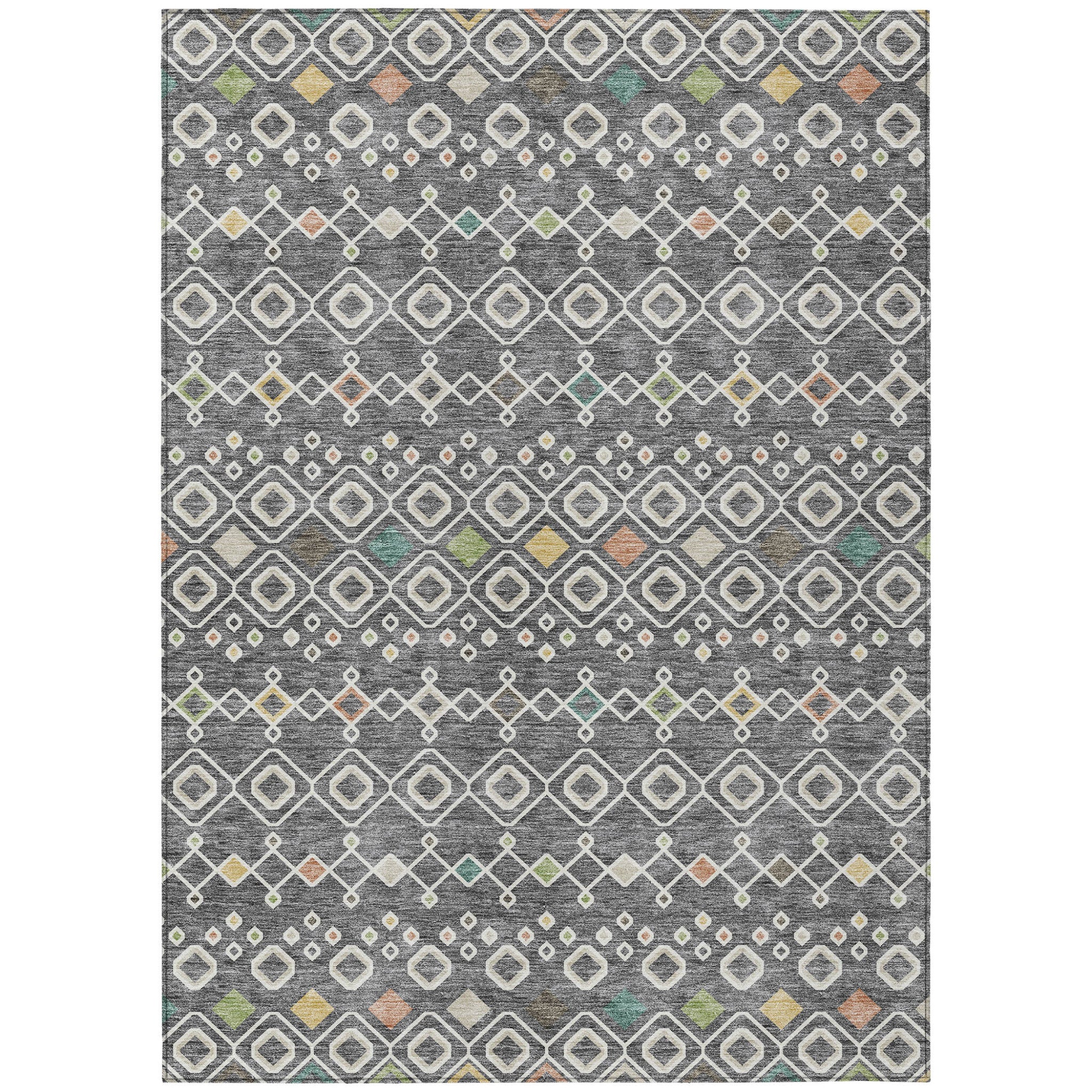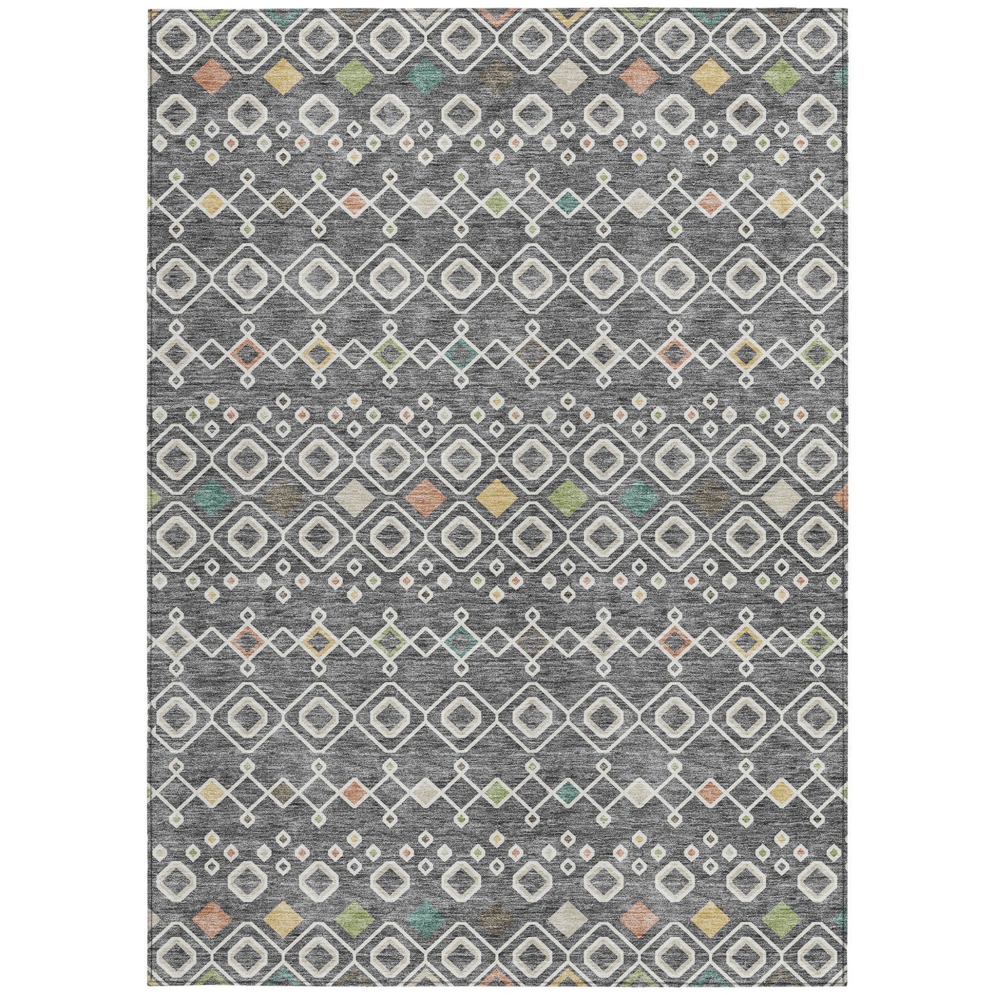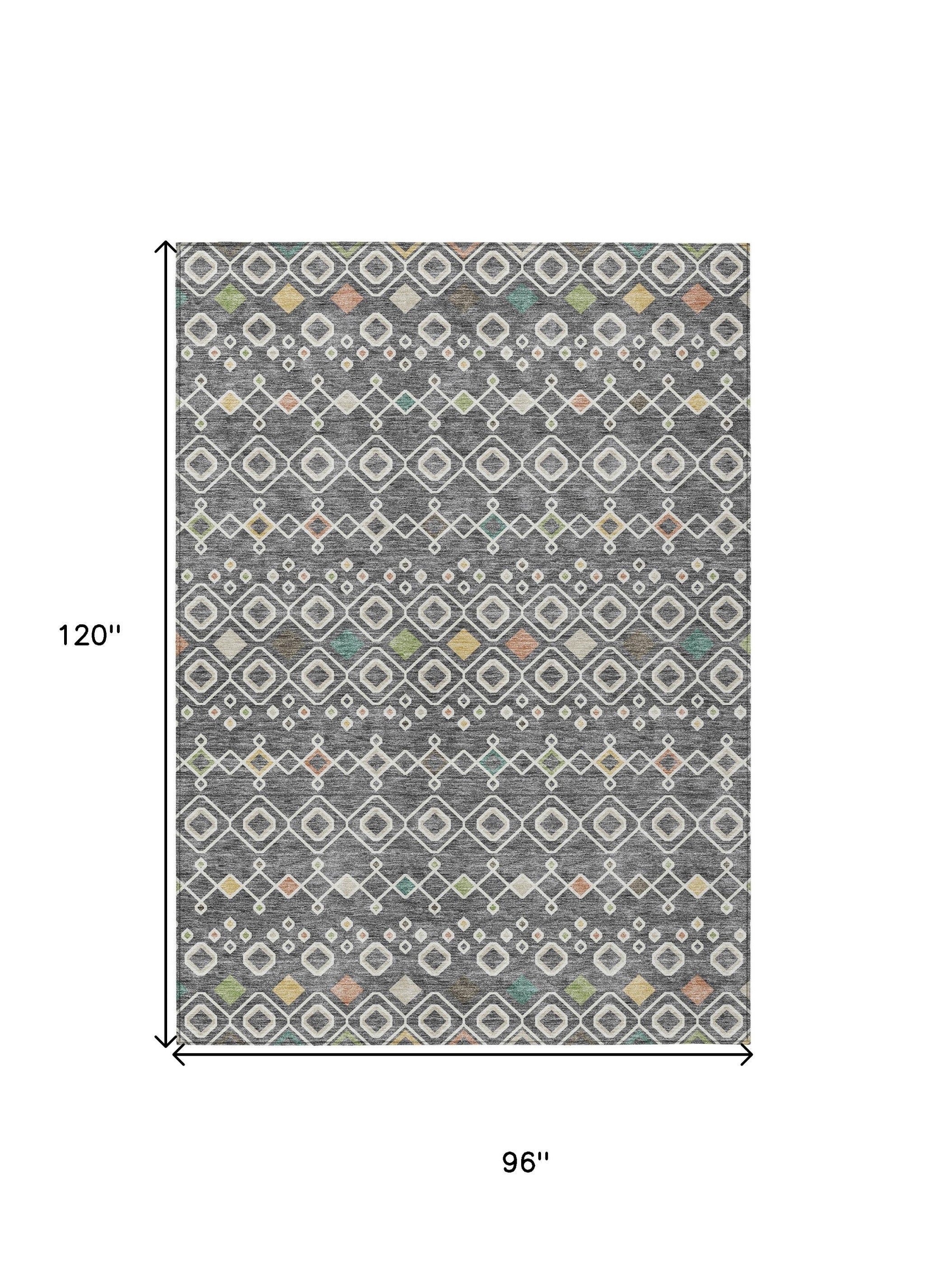 This 8-foot x 10-foot gray ivory and gold geometric washable indoor outdoor area rug, is a great way to add warmth to a room. This rectangle shaped rug features a geometric design that will work well both indoors or out. A classic shape marries with good looking design for your living room, hall, bedroom, porch, patio, or poolside. Ideal for outdoor spaces or high traffic areas with kids and pets, this rug is made from heavy duty polyester that is stain resistant to help repel water, dirt, and stains. Versatile in use, durable, and easy to maintain, this rug is an ideal solution to add a decorative and inviting touch to your indoor or outdoor space. 96-inch h x 120-inch w x 0.19-inch d.