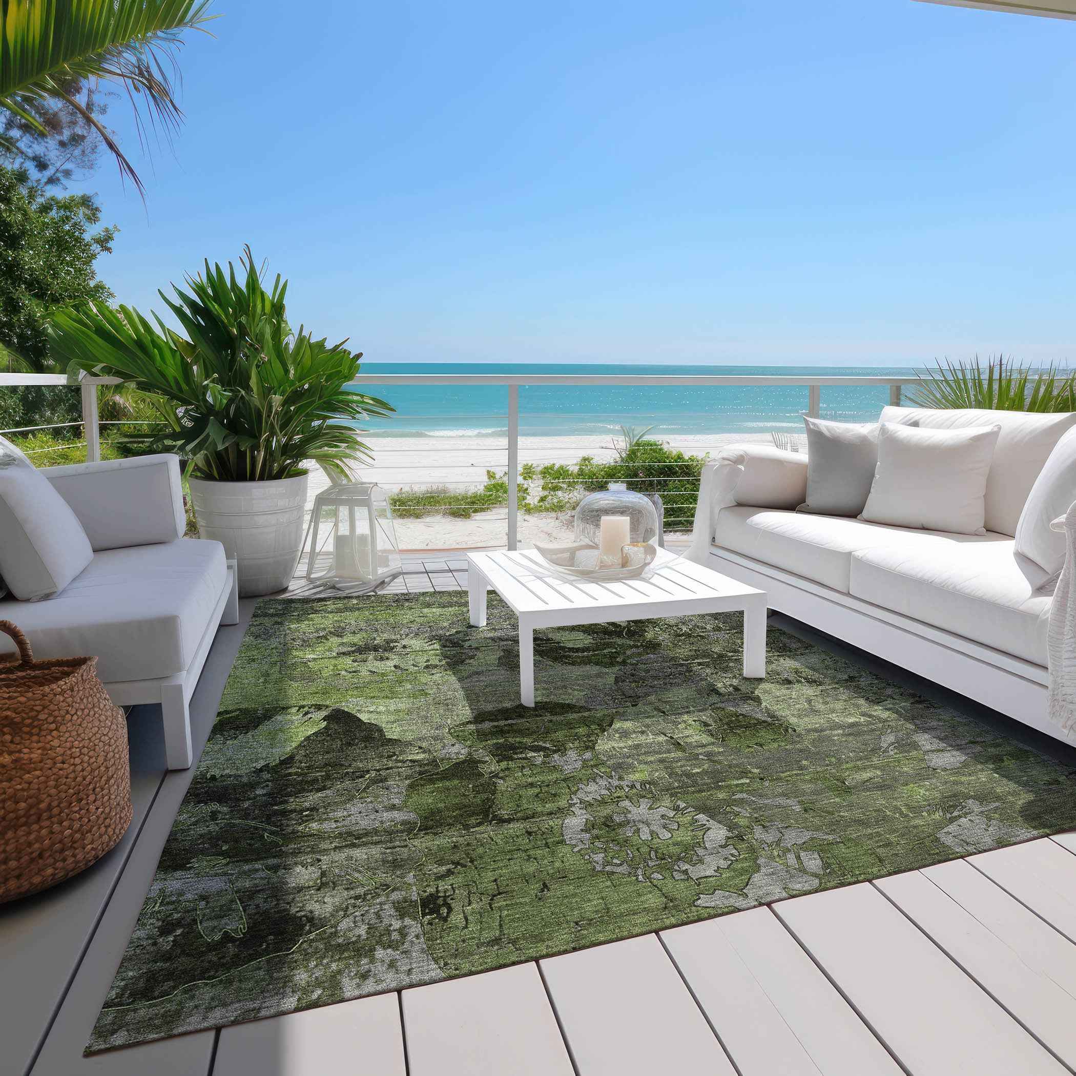 8' X 10' Green and Gray Abstract Washable Indoor Outdoor Area Rug