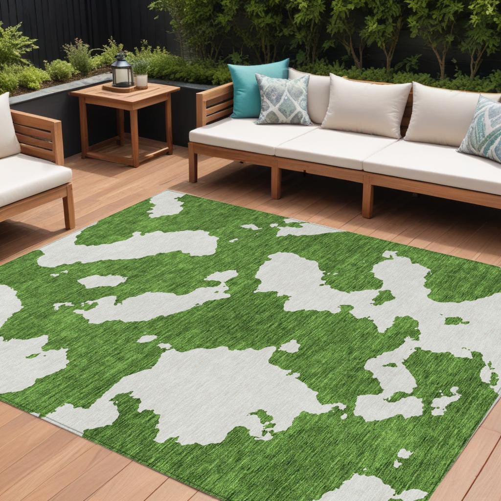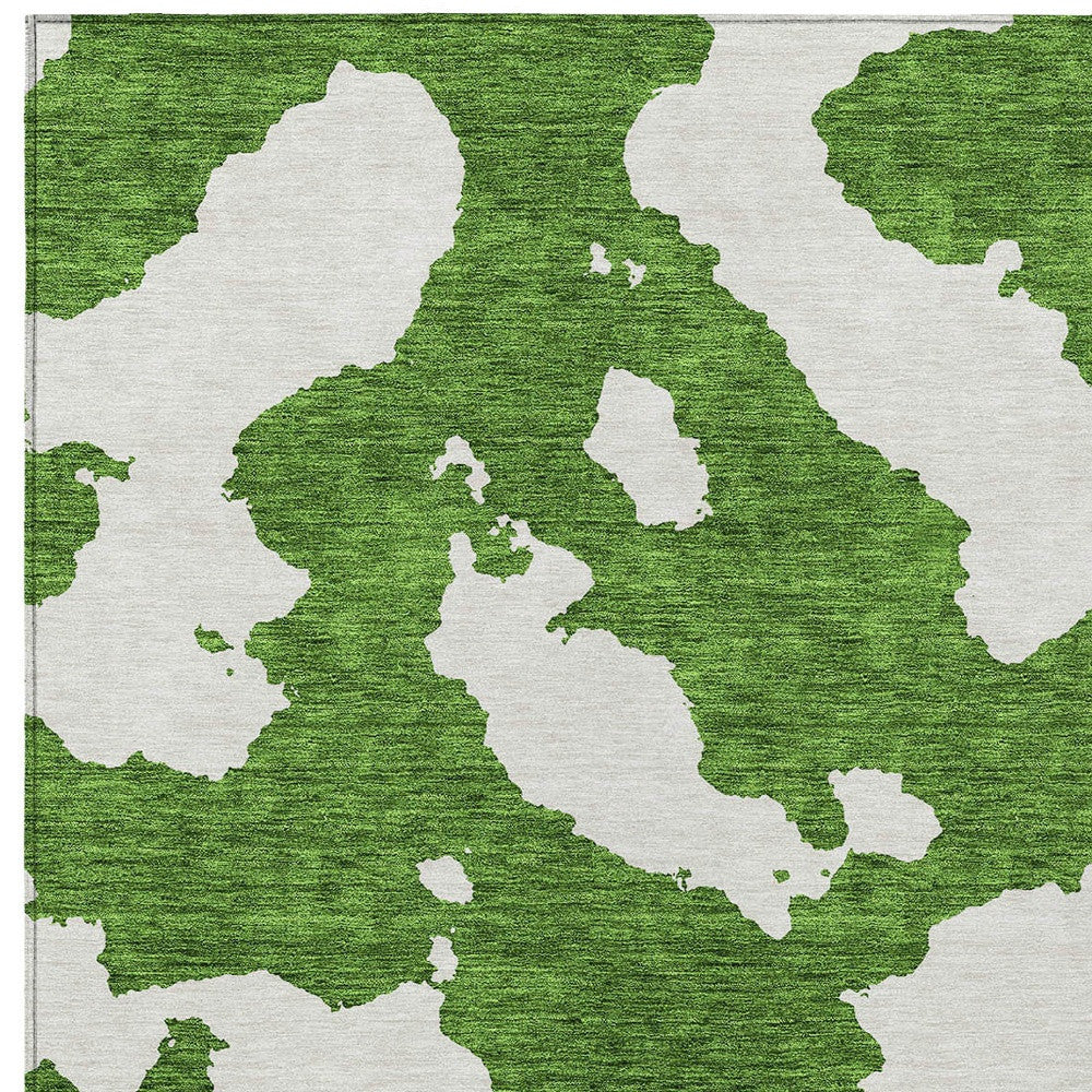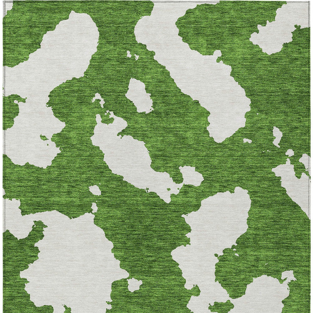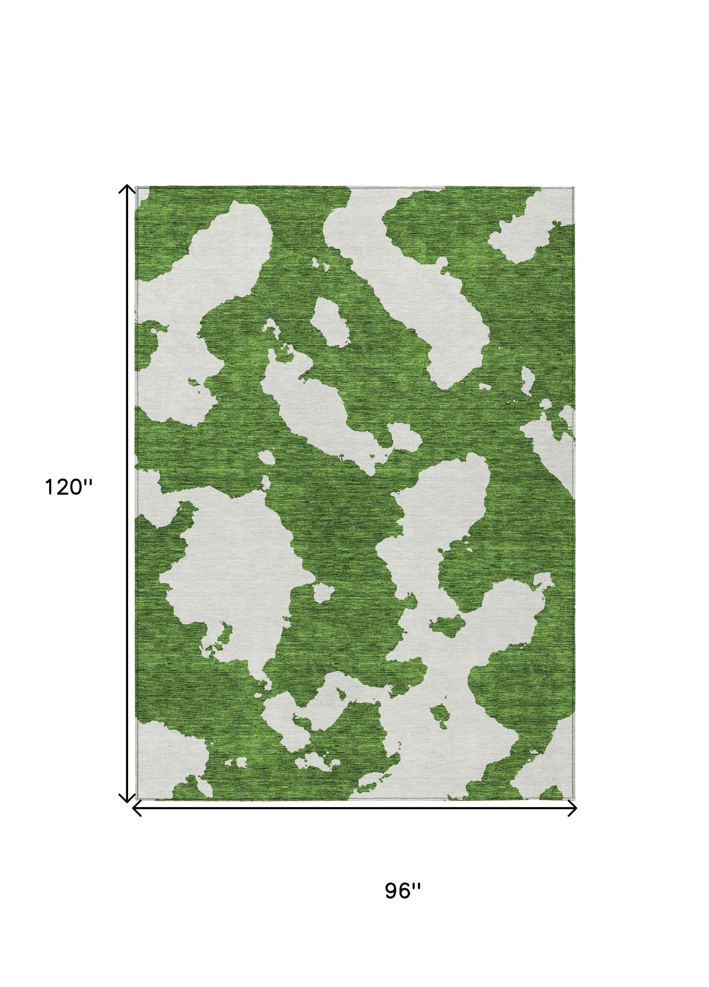 8' X 10' Green And Ivory Abstract Washable Indoor Outdoor Area Rug