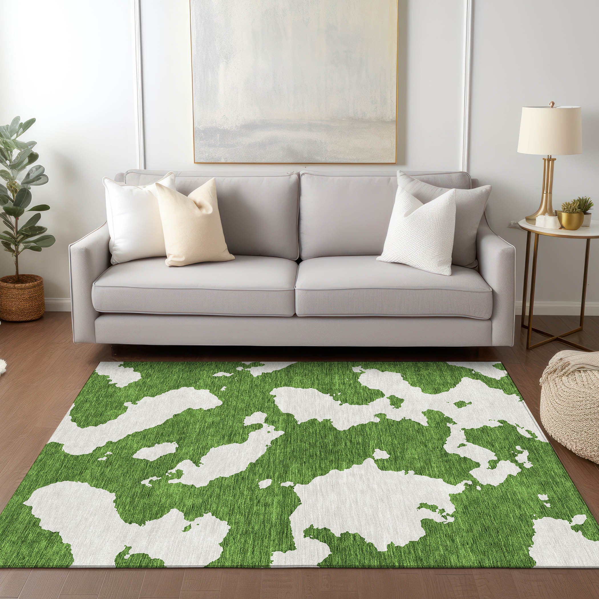 This 8-foot x 10-foot green and ivory abstract washable indoor outdoor area rug, is a great way to add warmth to a room. This rectangle shaped rug features a abstract design that will work well both indoors or out. A classic shape marries with good looking design for your living room, hall, bedroom, porch, patio, or poolside. Ideal for outdoor spaces or high traffic areas with kids and pets, this rug is made from heavy duty polyester that is stain resistant to help repel water, dirt, and stains. Versatile in use, durable, and easy to maintain, this rug is an ideal solution to add a decorative and inviting touch to your indoor or outdoor space. 96-inch h x 120-inch w x 0.19-inch d.