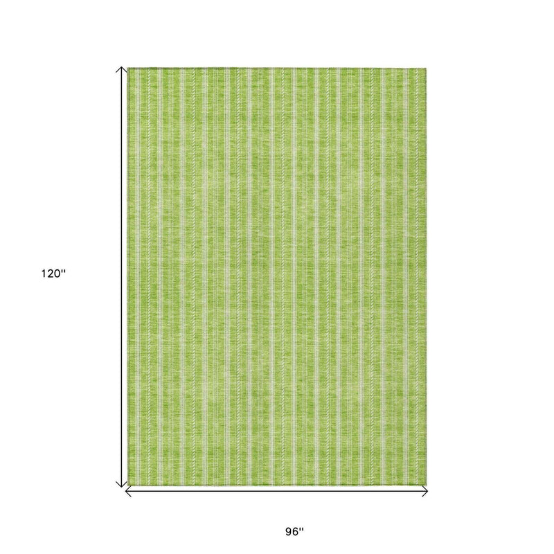 8' X 10' Lime Green And Ivory Striped Washable Indoor Outdoor Area Rug