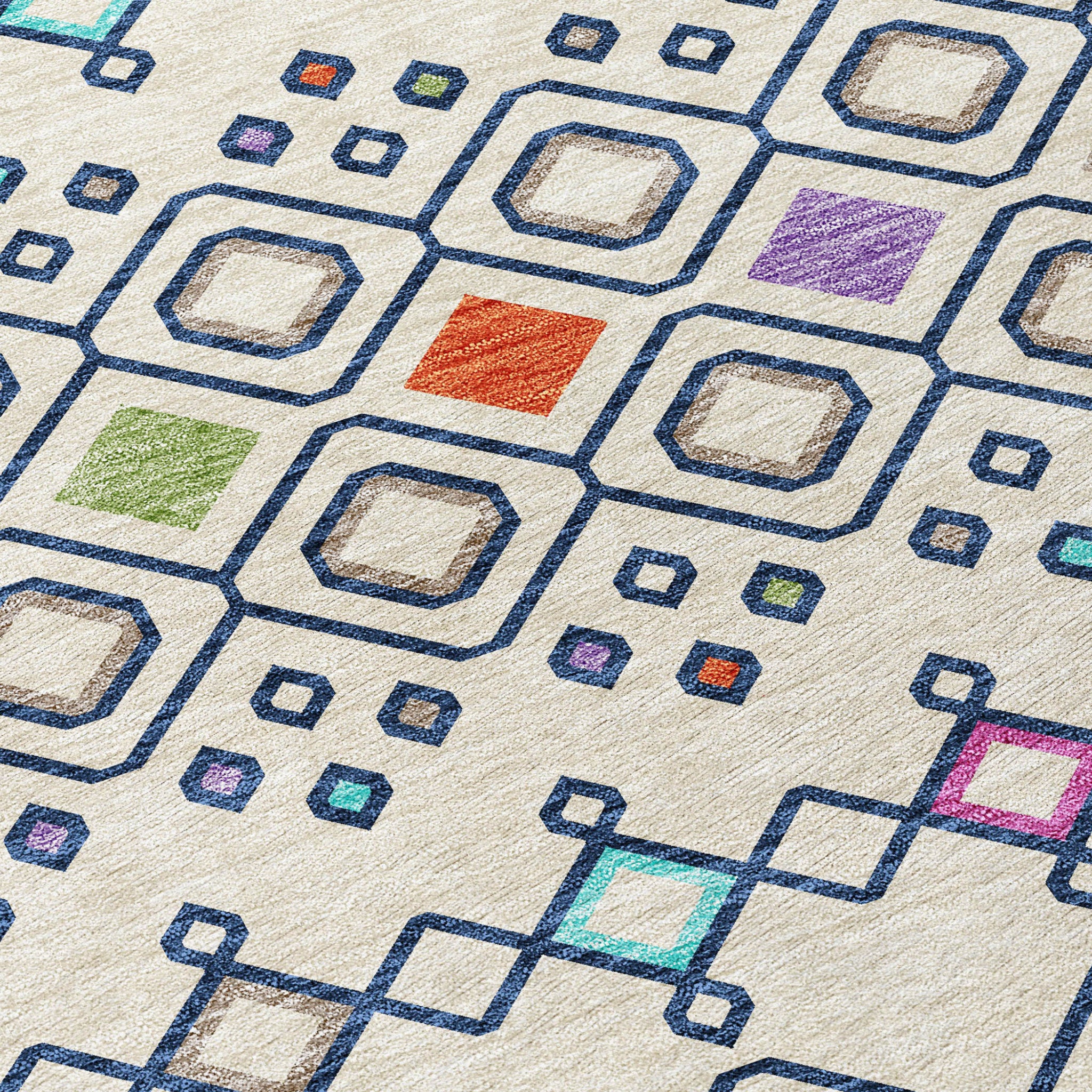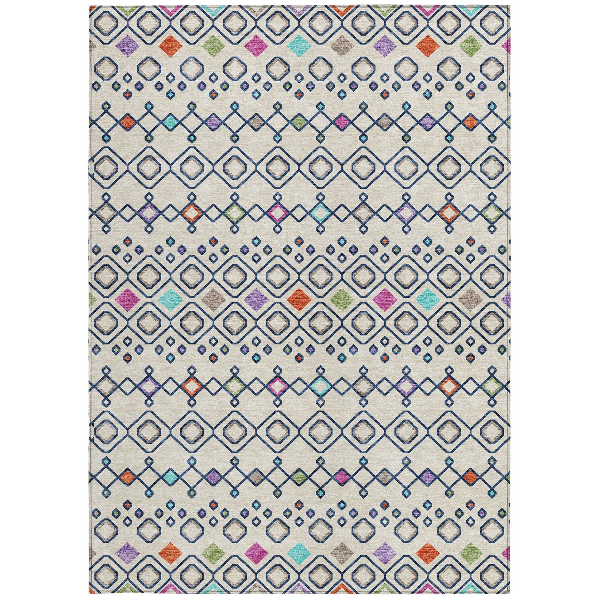 8' X 10' Linen Pink And Orange Geometric Washable Indoor Outdoor Area Rug