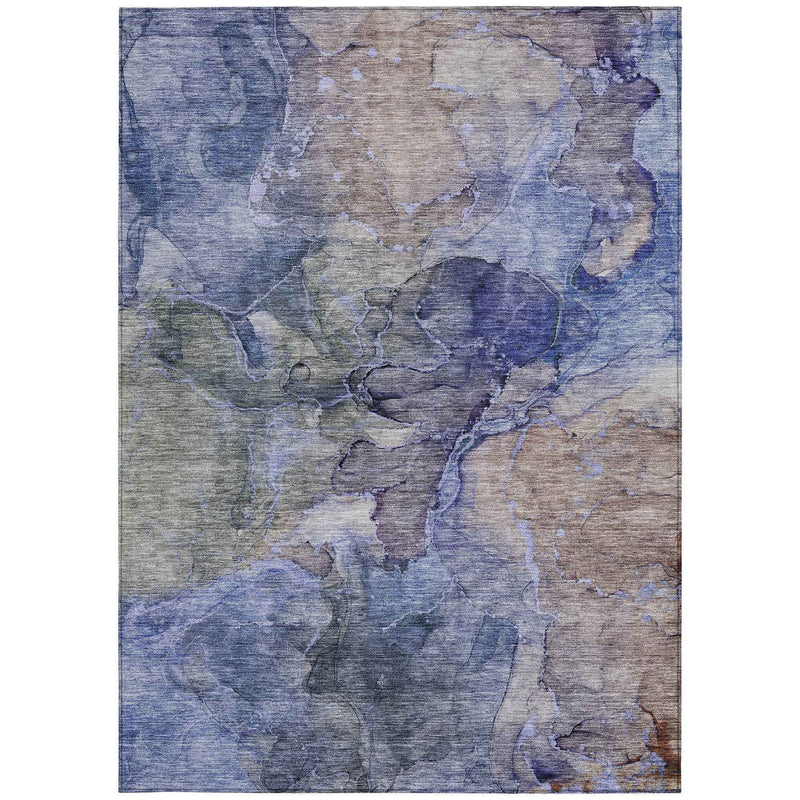 8' X 10' Navy Blue And Beige Abstract Washable Indoor Outdoor Area Rug