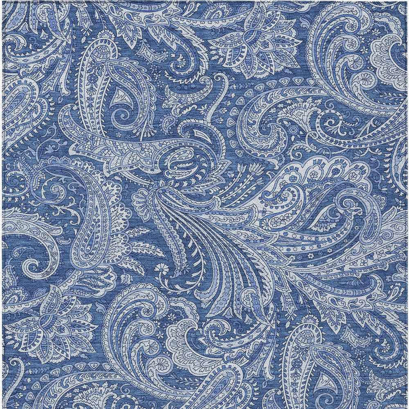 8' X 10' Navy Blue And Denim Blue Paisley Washable Indoor Outdoor Area 跳到内容