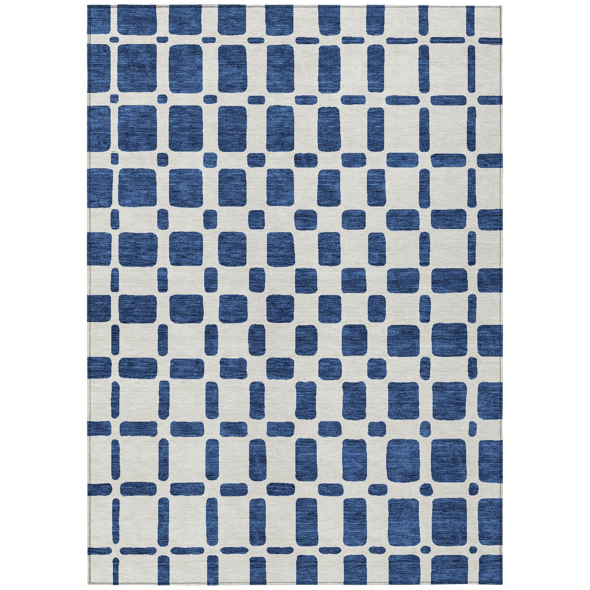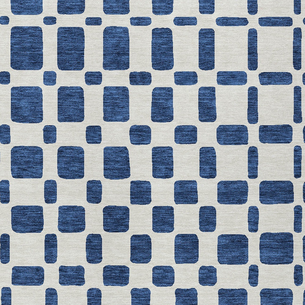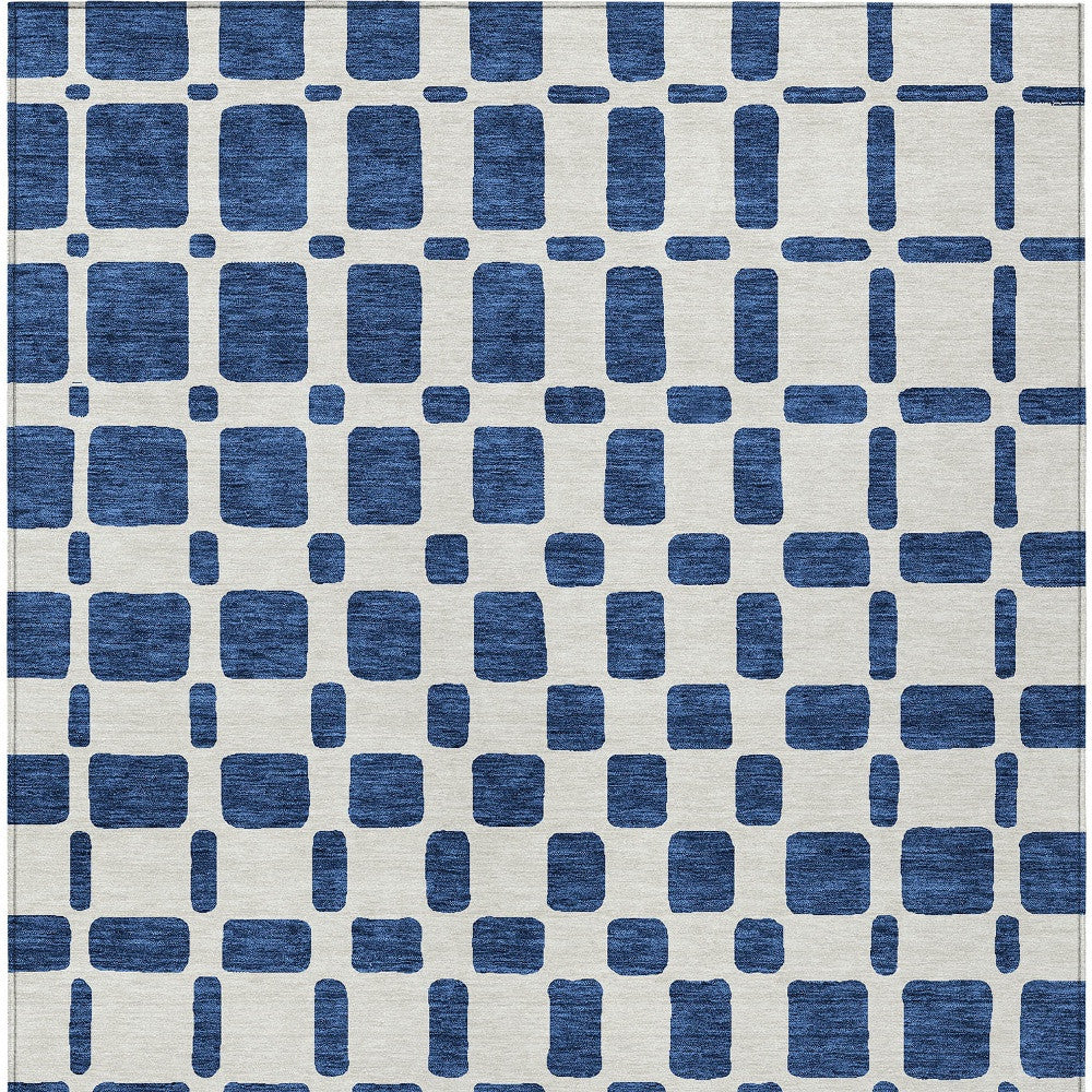 8' X 10' Navy Blue And Ivory Geometric Washable Indoor Outdoor Area Rug
