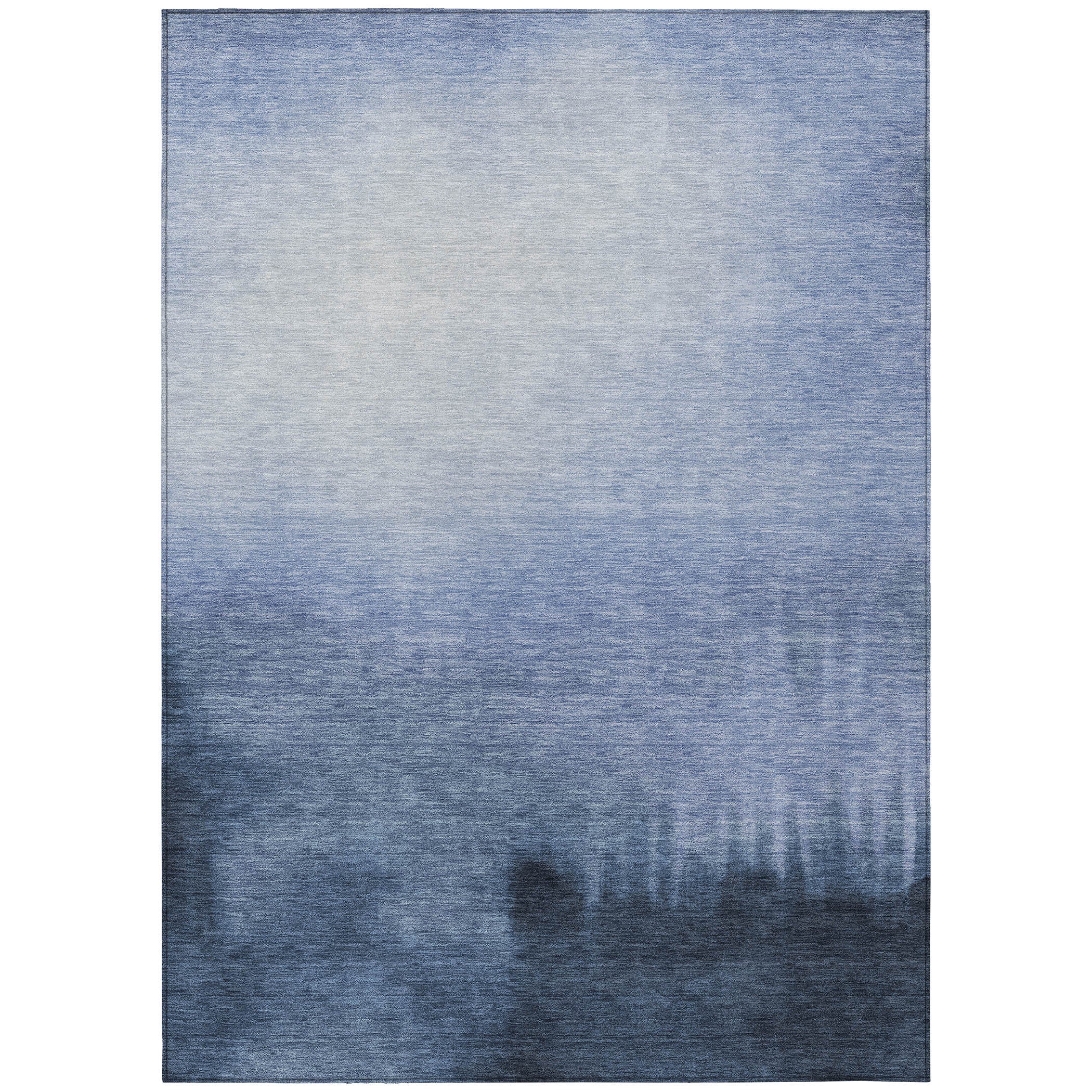 8' X 10' Navy Blue Charcoal And Sky Blue Abstract Washable Indoor Outdoor Area Rug