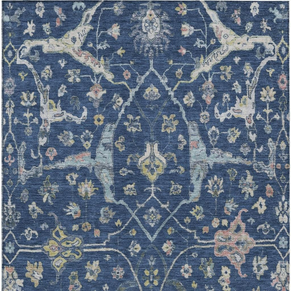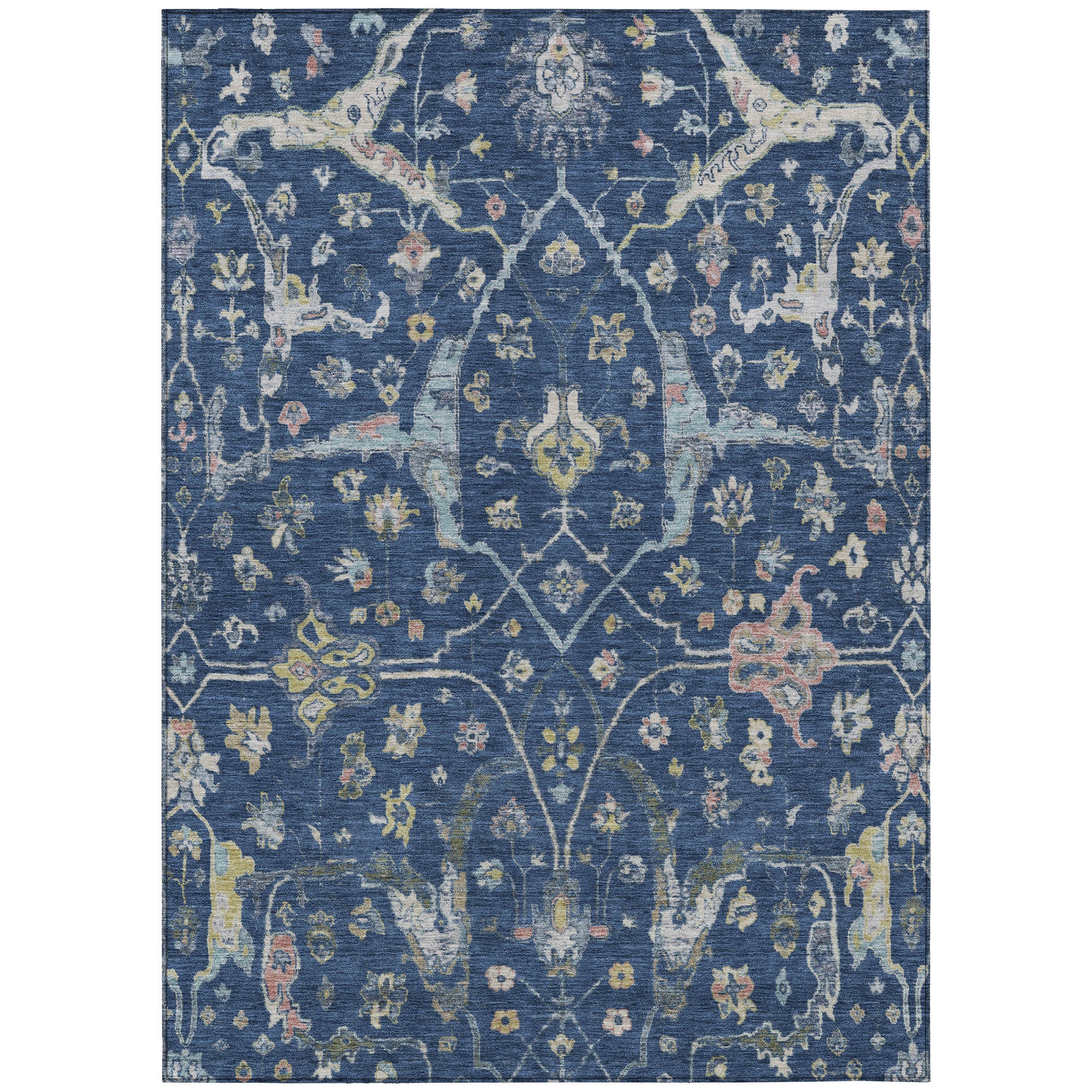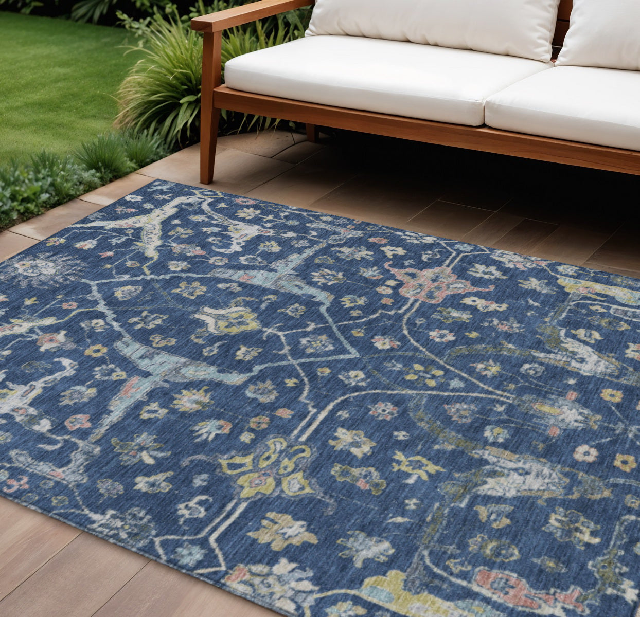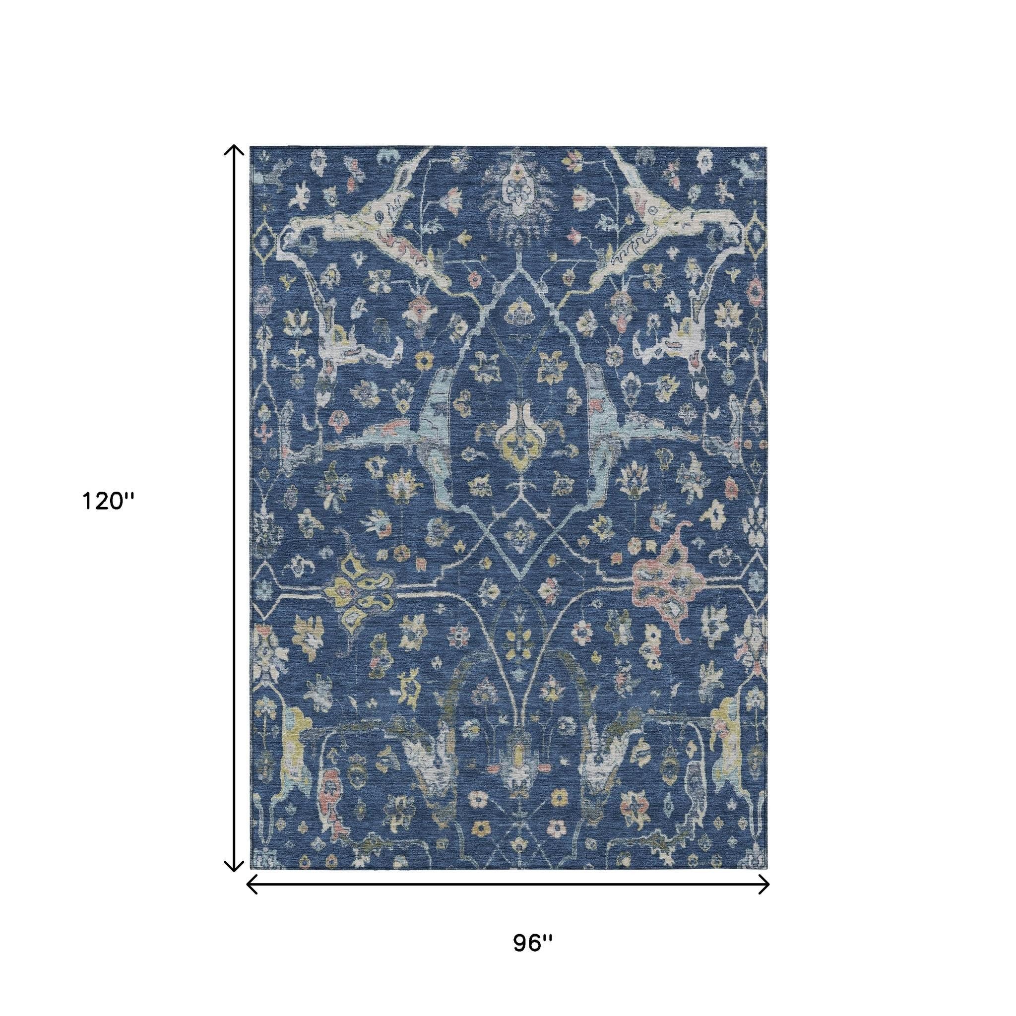8' X 10' Navy Blue Gold And Ivory Floral Washable Indoor Outdoor Area Rug