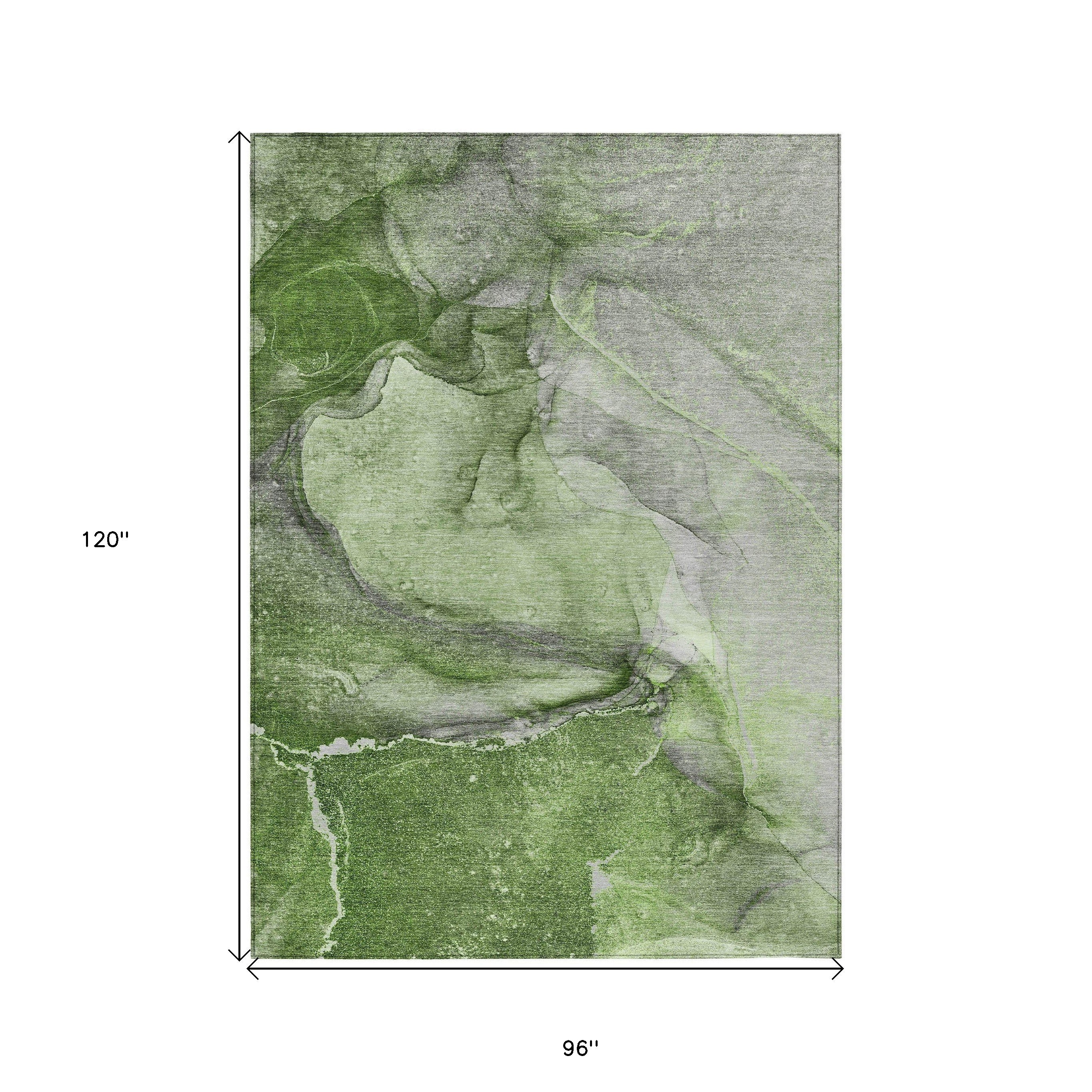 8' X 10' Olive Green Abstract Washable Non Skid Indoor Outdoor Area Rug