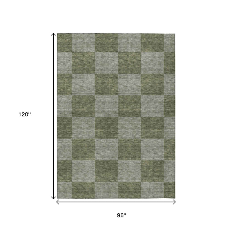 8' X 10' Olive Green And Gray Geometric Washable Indoor Outdoor Area Rug