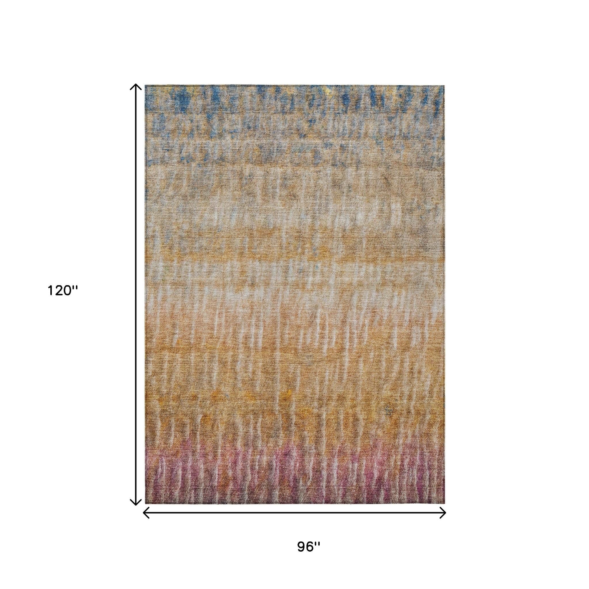 8' X 10' Orange Blue And Beige Abstract Washable Indoor Outdoor Area Rug