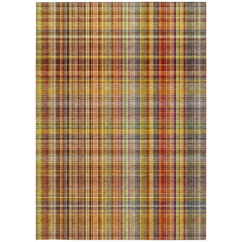 Add great coloration and comfortable texture to your space with this 8-foot x 10-foot orange plaid washable stain resistant non skid indoor outdoor area rug. This rectangle shaped rug features a plaid design in orange to give it visual interest. A classic shape marries with good looking design for your space ideal for spaces with kids and pets, this rug is stain resistant to help repel stains and spilled liquids. Place this area rug against a hardwood or tile floor and it will enliven your living space with style and sophistication. 96-inch H x 120-inch W x 0.19-inch D