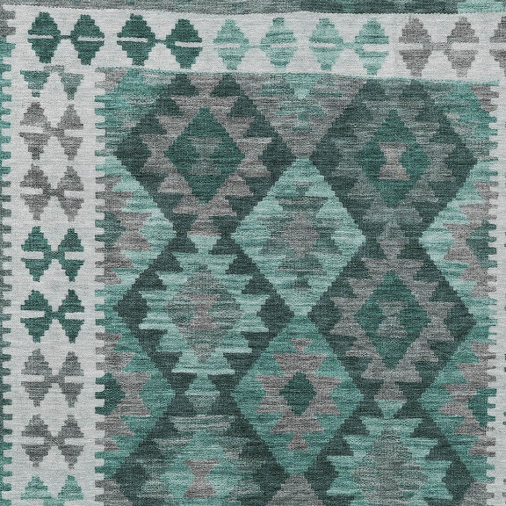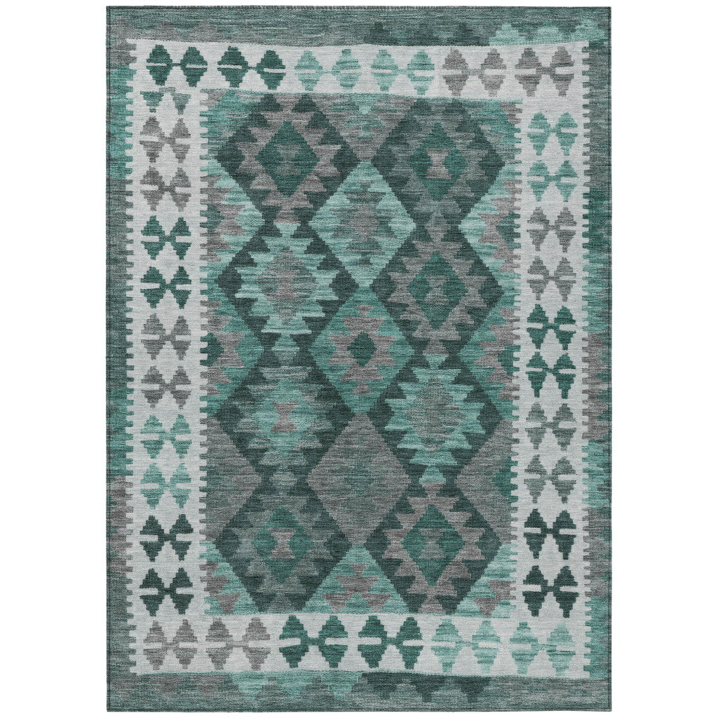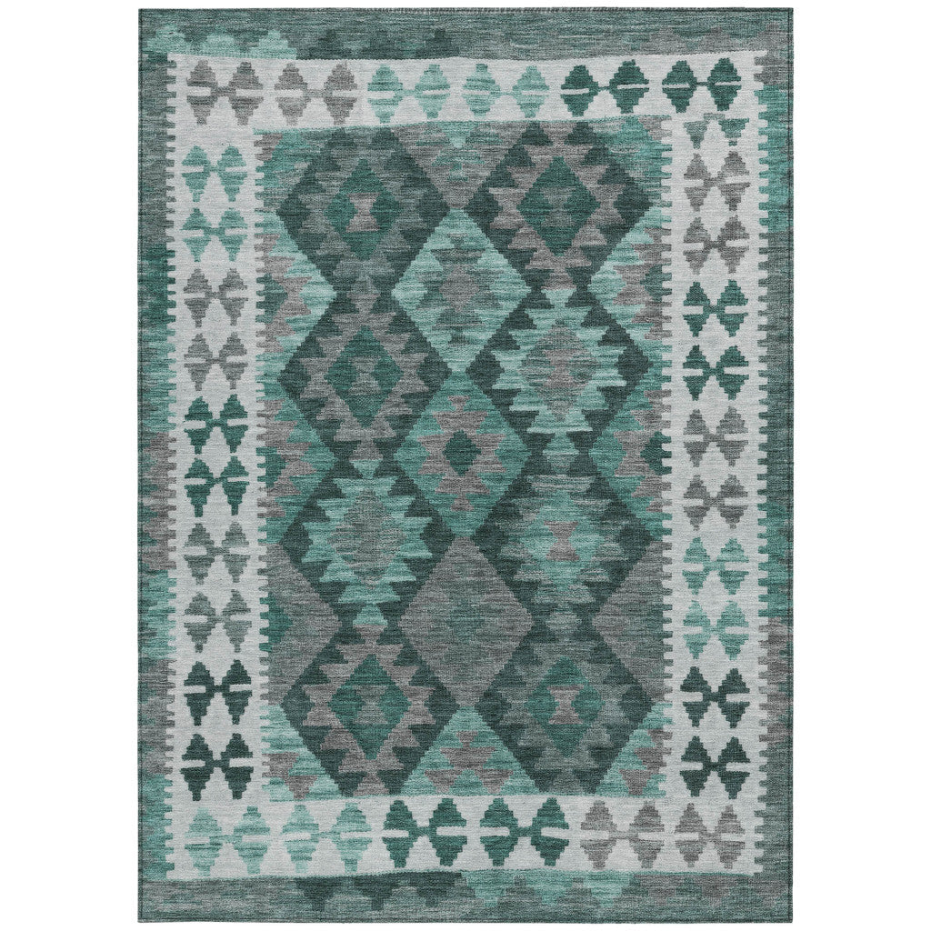 8' X 10' Pale Aqua Ivory And Gray Tribal Washable Indoor Outdoor Area Rug