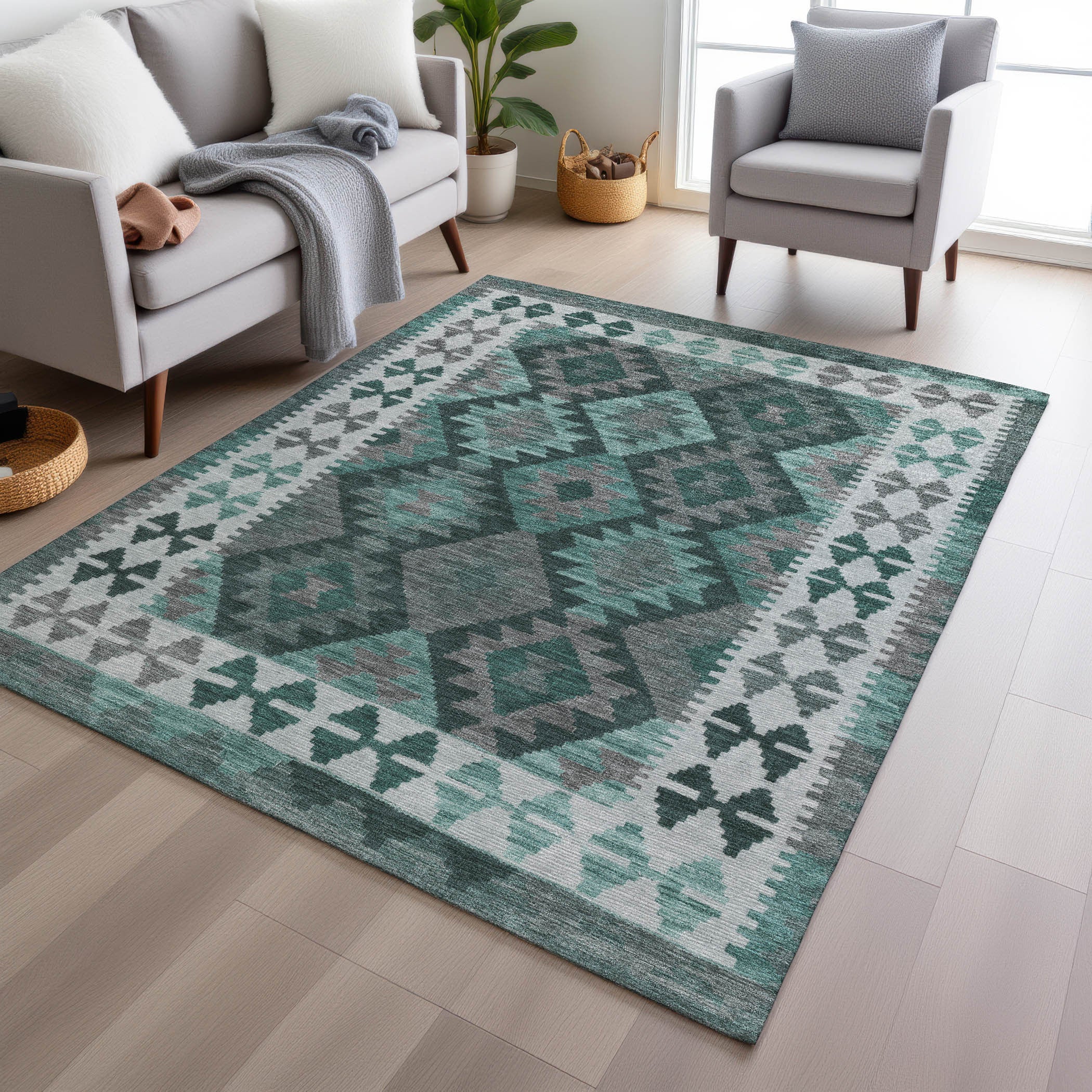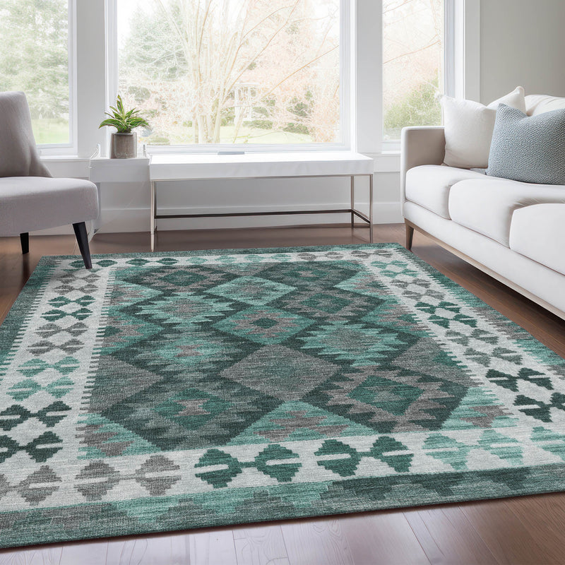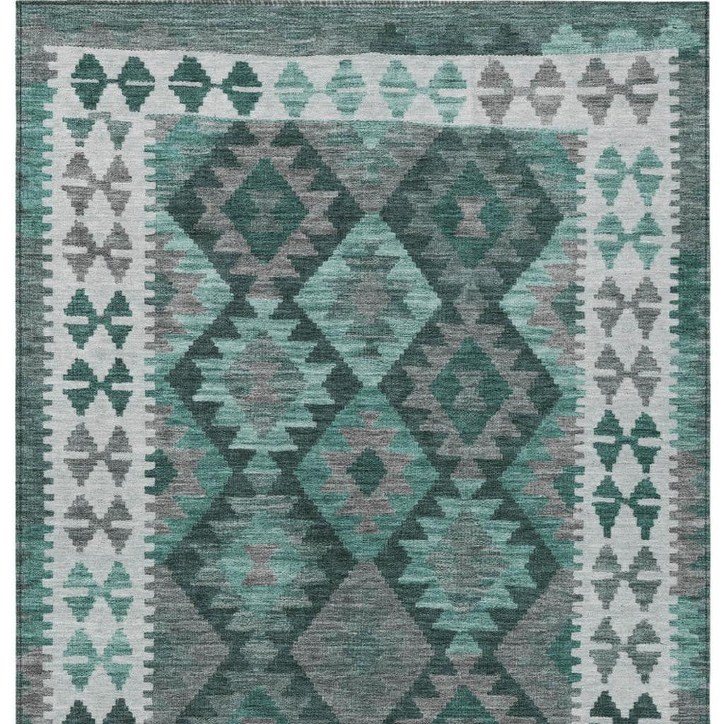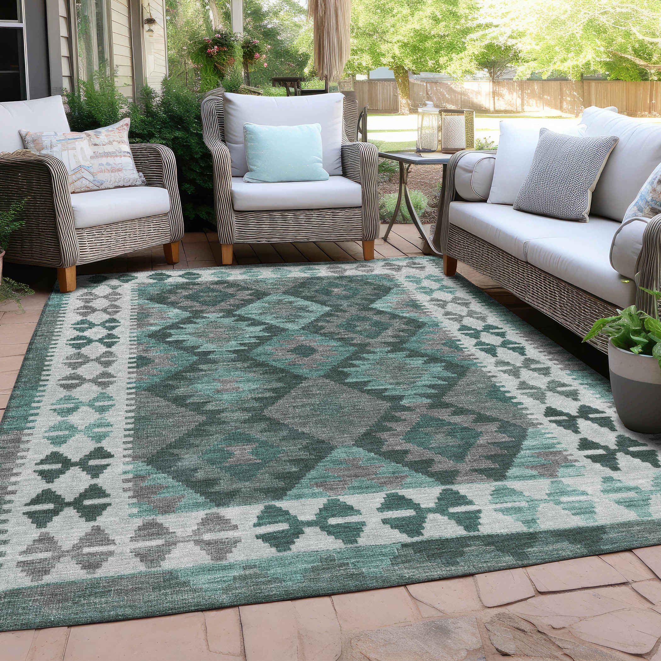 8' X 10' Pale Aqua Ivory And Gray Tribal Washable Indoor Outdoor Area Rug