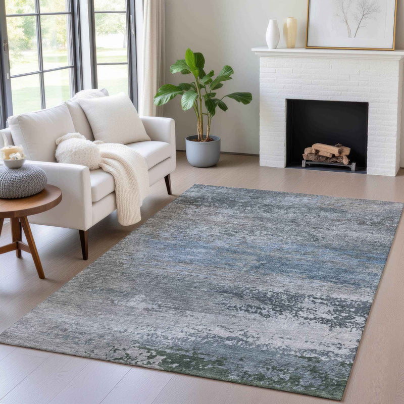 This 8-foot x 10-foot pewter navy blue and charcoal abstract washable indoor outdoor area rug, is a great way to add warmth to a room. This rectangle shaped rug features a abstract design that will work well both indoors or out. A classic shape marries with good looking design for your living room, hall, bedroom, porch, patio, or poolside. Ideal for outdoor spaces or high traffic areas with kids and pets, this rug is made from heavy duty polyester that is stain resistant to help repel water, dirt, and stains. Makes a great way to dress up your patio, porch, or poolside, but also works well as a durable and easy to maintain option in the kitchen, family room, or mudroom. 96-inch h x 120-inch w x 0.19-inch d.