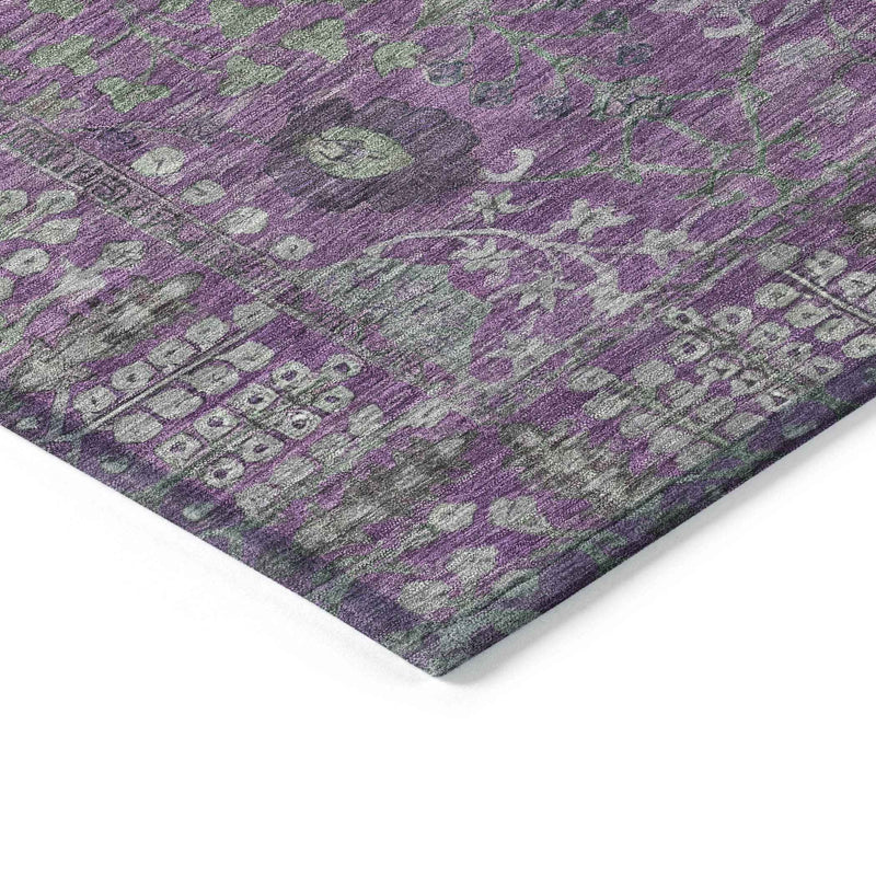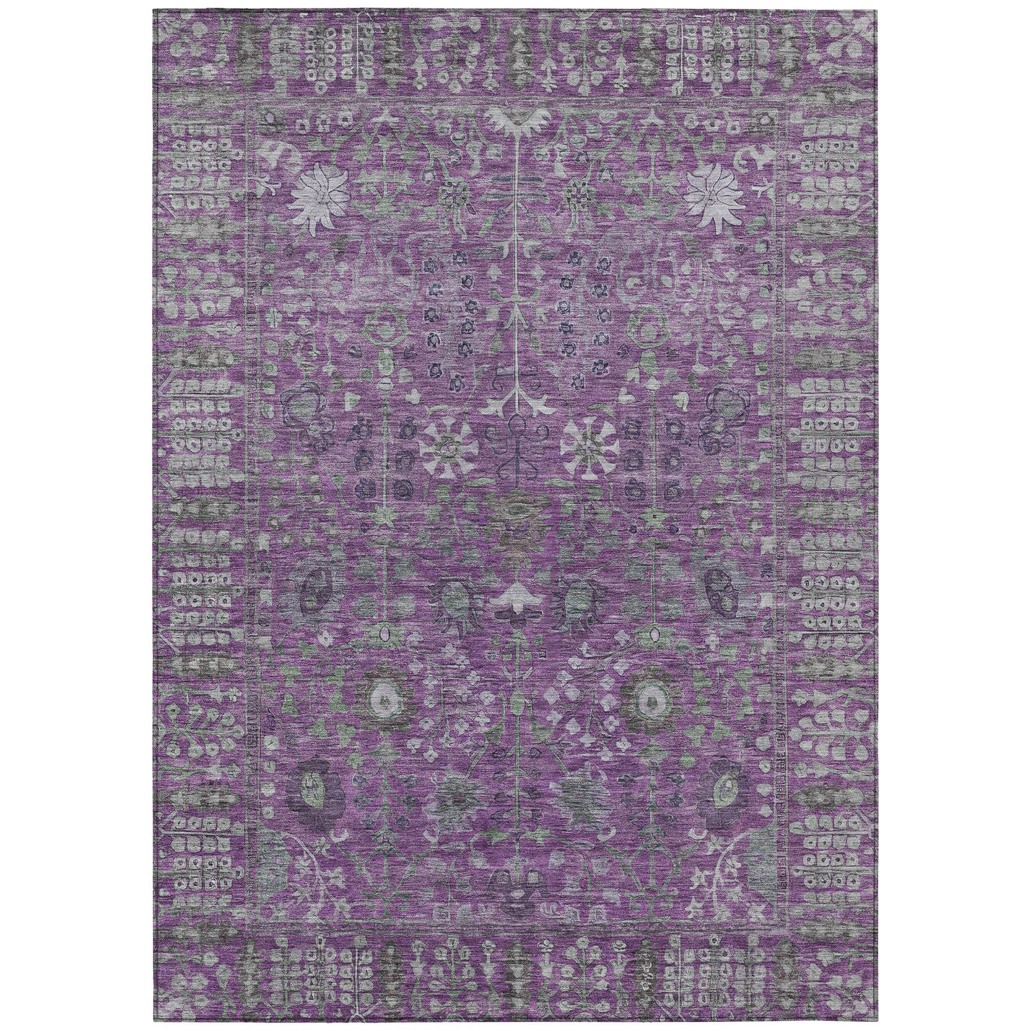 8' X 10' Purple And Ivory Floral Washable Indoor Outdoor Area Rug
