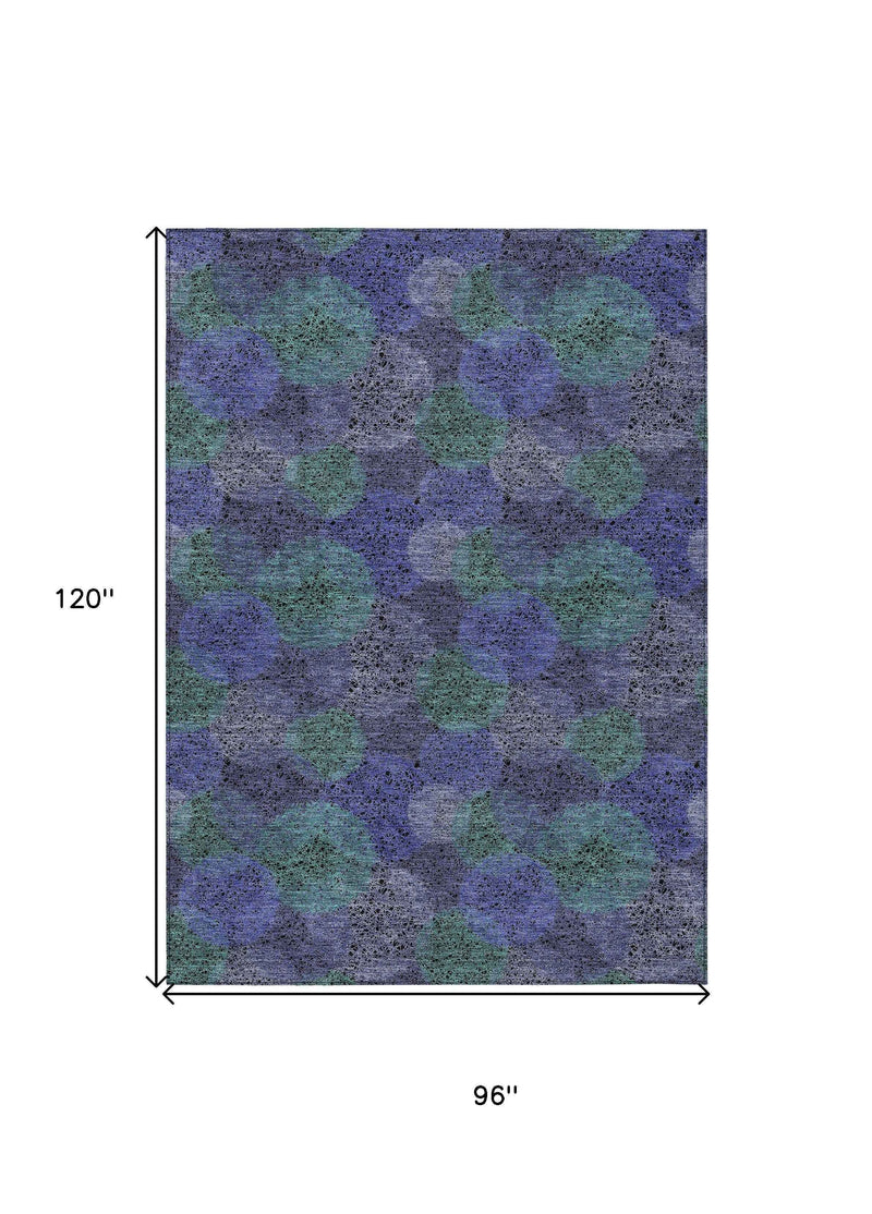 8' X 10' Purple Lavender And Green Polka Dot Washable Indoor Outdoor Area Rug