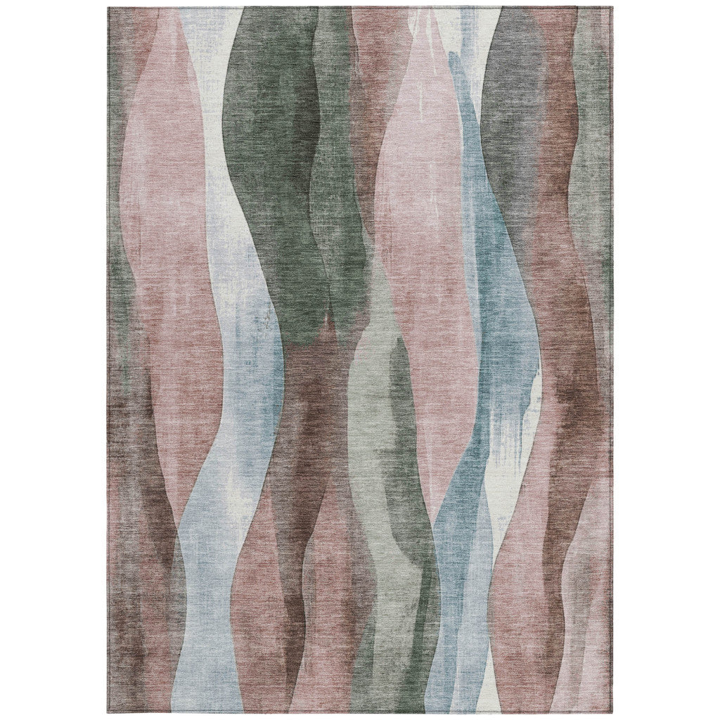 8' X 10' Salmon And Denim Blue Abstract Washable Indoor Outdoor Area Rug