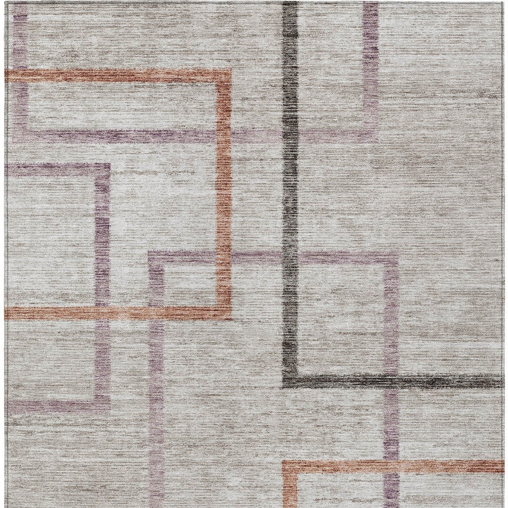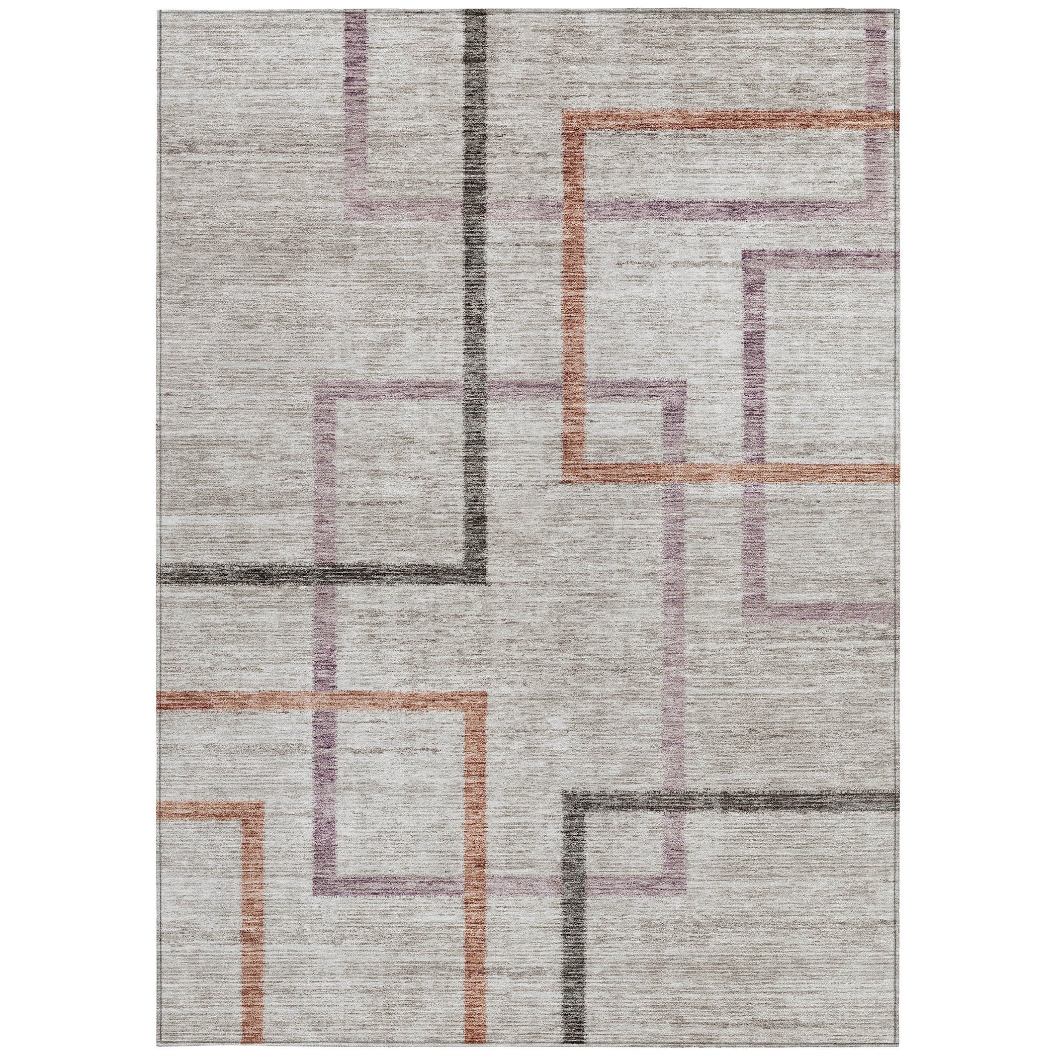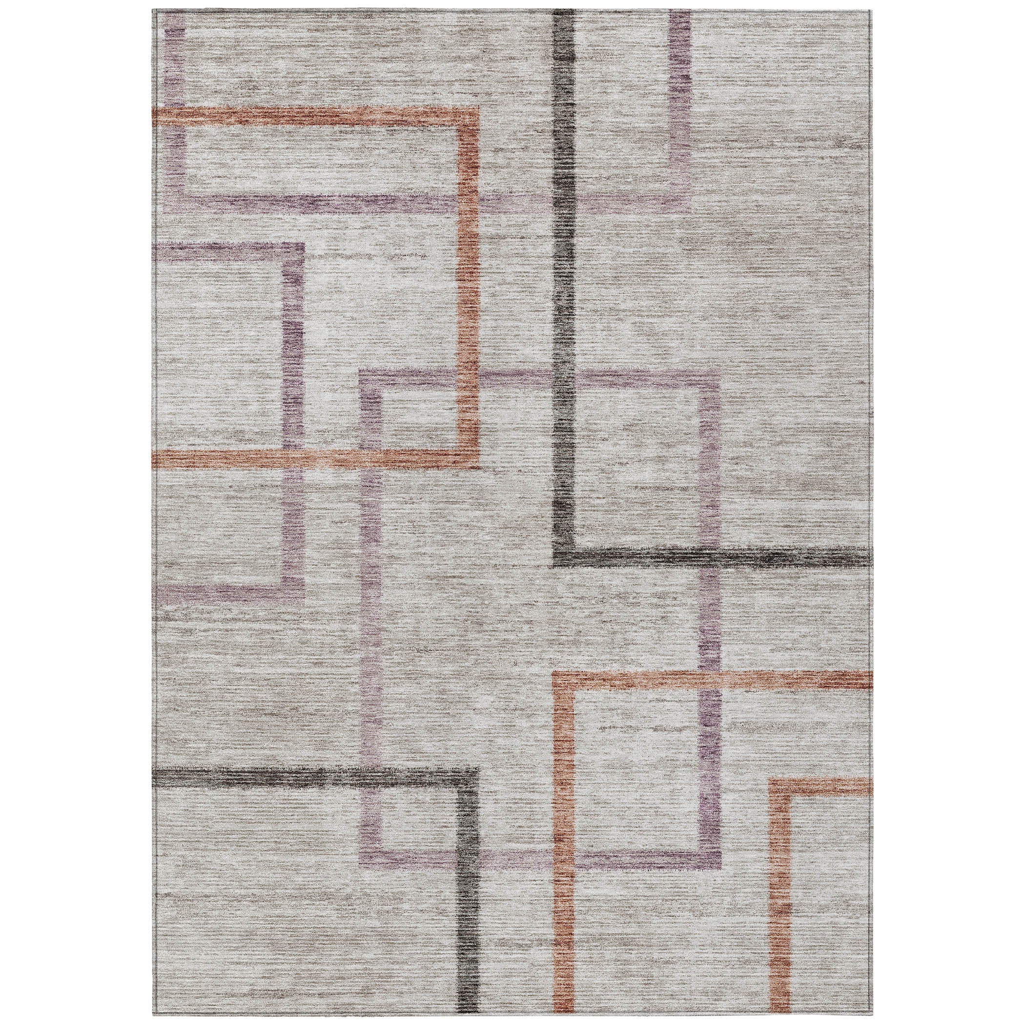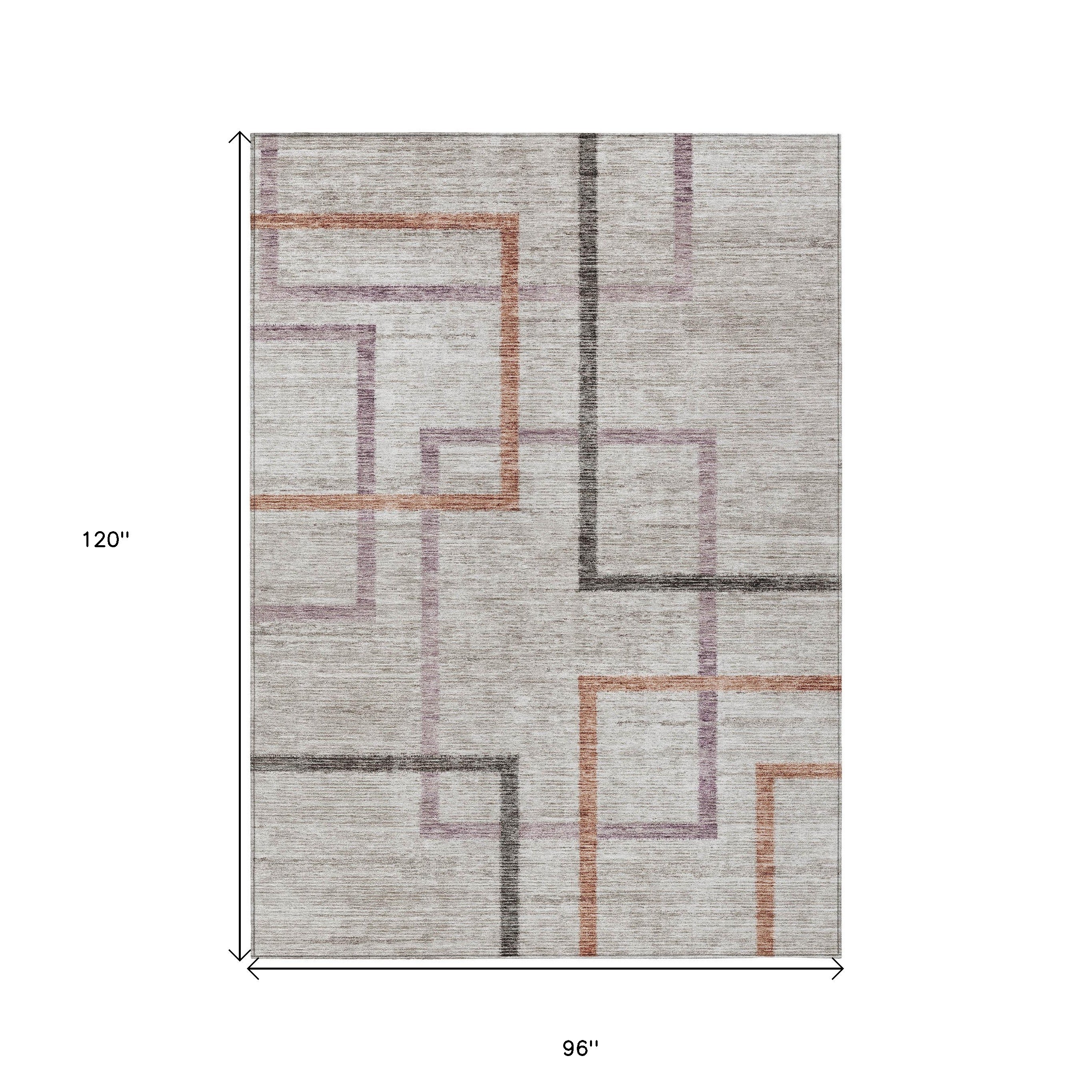 8' X 10' Taupe Charcoal And Copper Geometric Washable Indoor Outdoor Area Rug