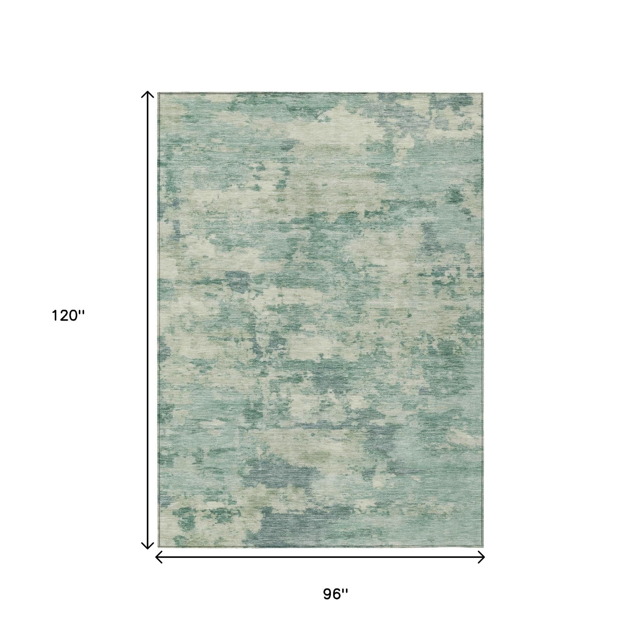 8' X 10' Teal Blue Linen And Pale Aqua Abstract Washable Indoor Outdoor Area Rug