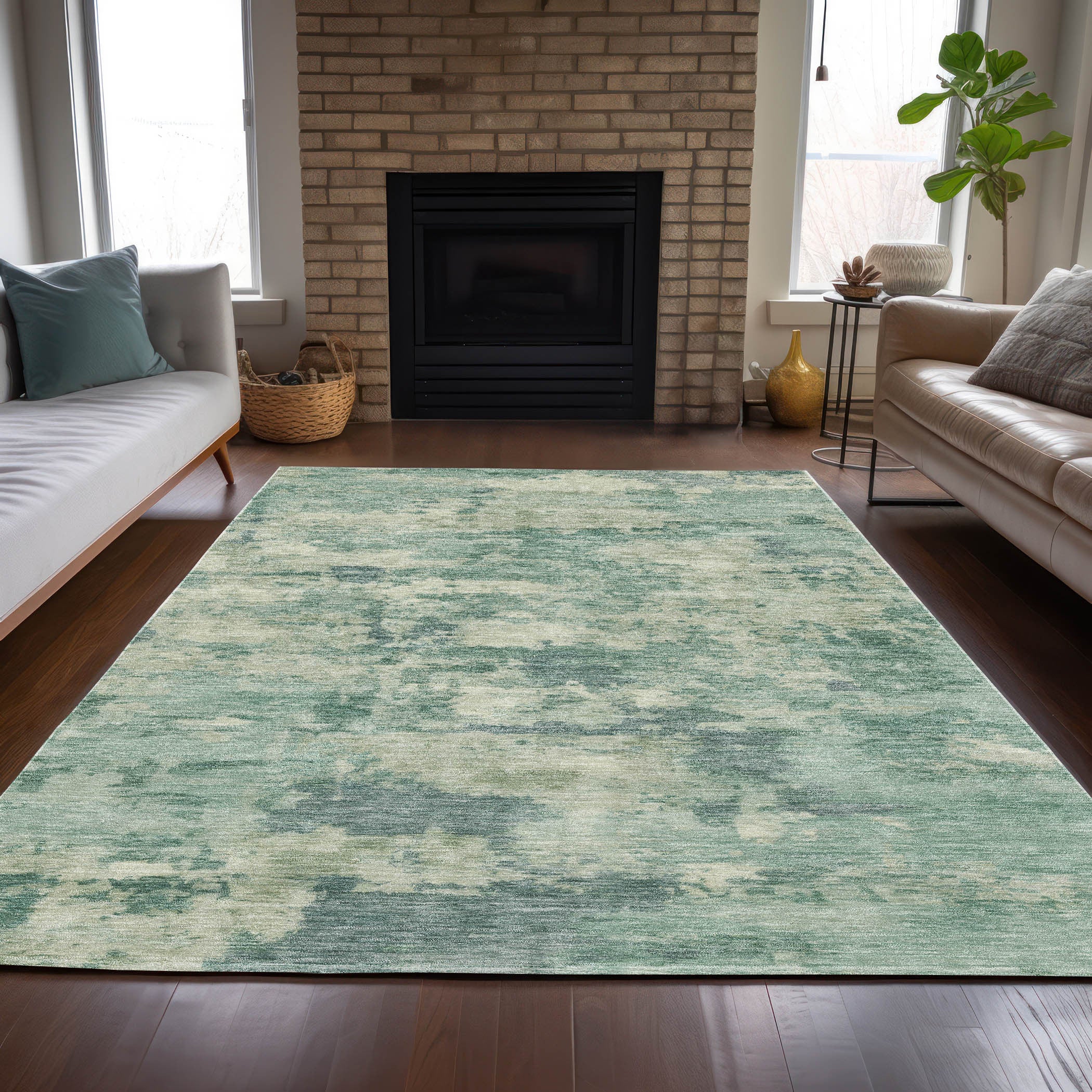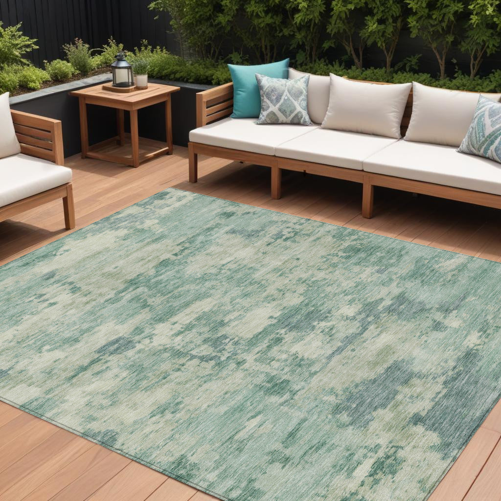 This 8-foot x 10-foot teal blue linen and pale aqua abstract washable indoor outdoor area rug, is a great way to add warmth to a room. This rectangle shaped rug features a abstract design that will work well both indoors or out. A classic shape marries with good looking design for your living room, hall, bedroom, porch, patio, or poolside. Ideal for outdoor spaces or high traffic areas with kids and pets, this rug is made from heavy duty polyester that is stain resistant to help repel water, dirt, and stains. Versatile in use, durable, and easy to maintain, this rug is an ideal solution to add a decorative and inviting touch to your indoor or outdoor space. 96-inch h x 120-inch w x 0.19-inch d.