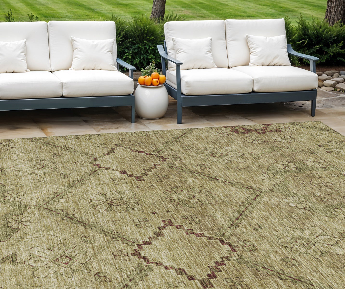 Add some artistry to your room with this 9-foot x 12-foot brown beige and artichoke green floral washable indoor outdoor area rug. This rectangle shaped rug features a floral design that will work well both indoors or out. A classic shape marries with good looking design for your living room, hall, bedroom, porch, patio, or poolside. Ideal for outdoor spaces or high traffic areas with kids and pets, this rug is made from heavy duty polyester that is stain resistant to help repel water, dirt, and stains. Makes a great way to dress up your patio, porch, or poolside, but also works well as a durable and easy to maintain option in the kitchen, family room, or mudroom. 108-inch h x 144-inch w x 0.19-inch d.