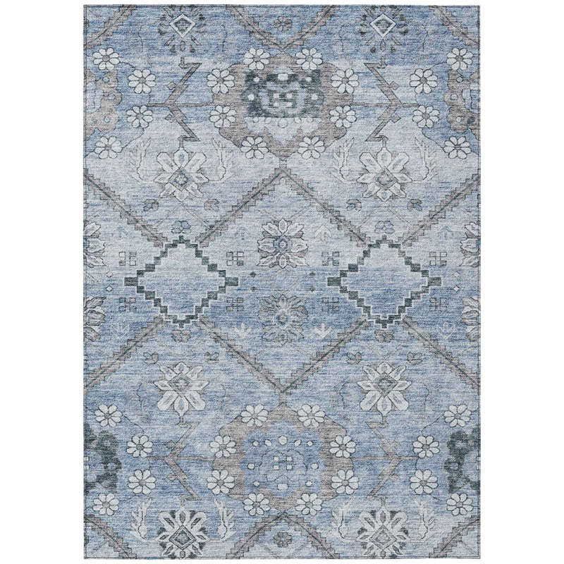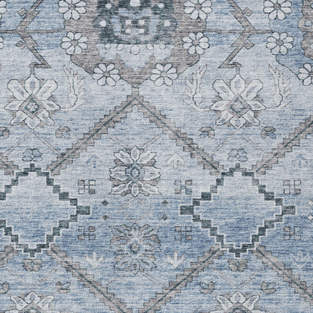 9' X 12' Sky Blue And Denim Blue Floral Washable Indoor Outdoor Area Rug