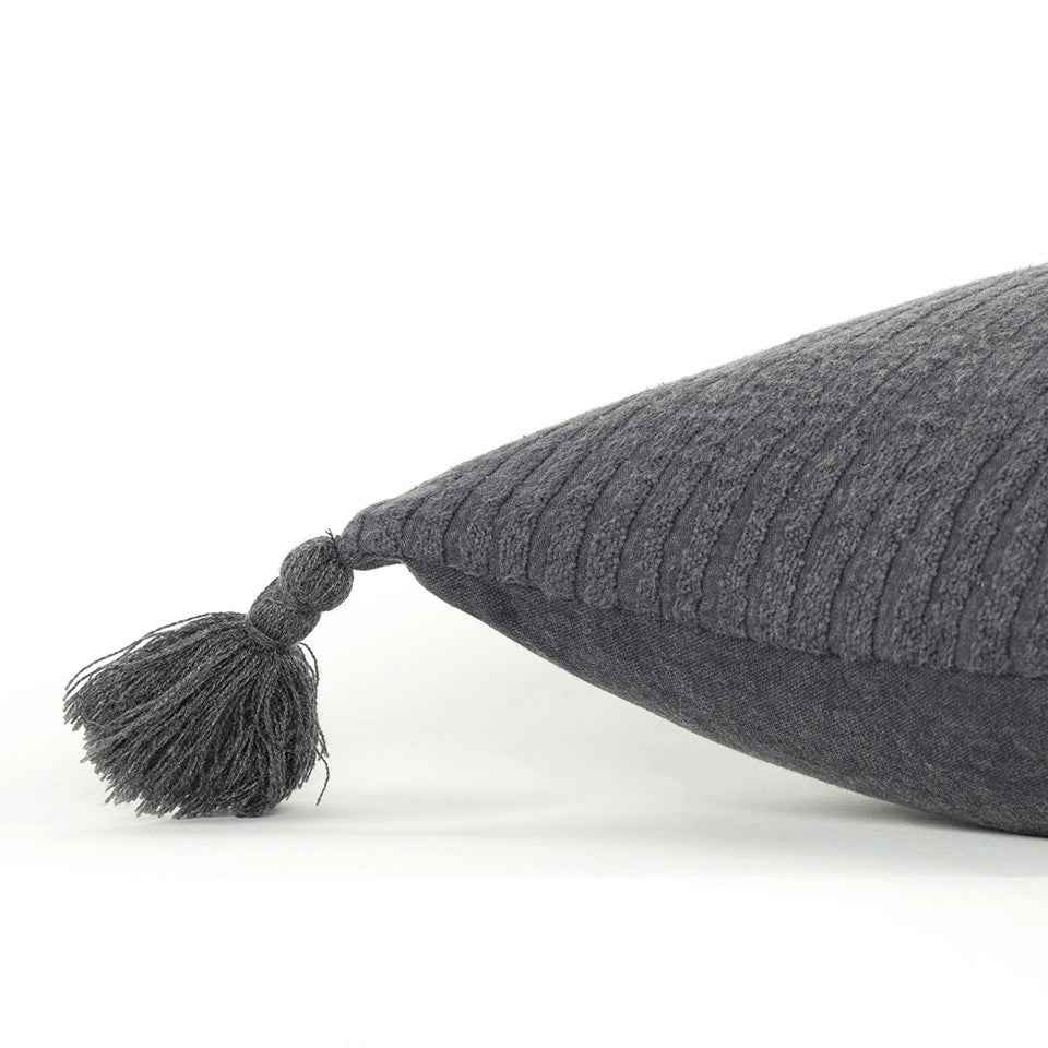 Sophisticatedly modern with a bohemian flair, this Black Solid Tonal Abstract Stripe Throw Pillow is an episode of style and simplicity to spruce up your living space. The solid black base features slightly raised abstract stripe patterning for texture while the four cotton corner tassels add a cheerful element to the pillow. Crafted from top-quality cotton fabric for enhanced durability and the polyfill insert makes it super soft, fluffy, and cuddly. The knife edging on the pillow ensures a clean and modern look to make it a suitable accent for a variety of interior styles. The solid coordination back sports a hidden zipper closure for convenience. Give your modern home a stylish visual appeal with this decorative throw pillow on the sofa or couch. 20” x 20” x 6.25”