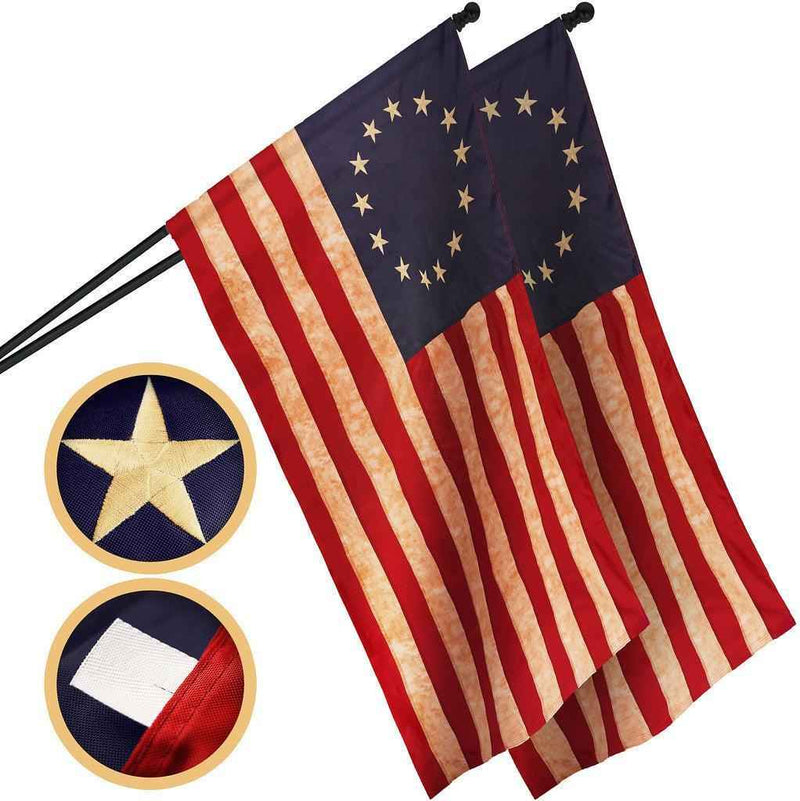 G128 2 Pack: Betsy Ross Tea-Stained Flag | 1x1.5 Ft | ToughWeave Pro 跳到内容