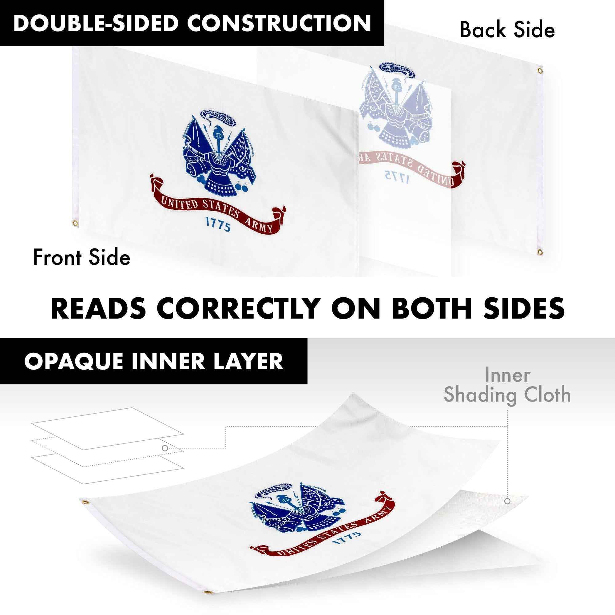 G128 - 6 Feet Tangle Free Spinning Flagpole (Silver) US Army Double Sided Brass Grommets Embroidered 3x5 ft (Flag Included) Aluminum Flag Pole
