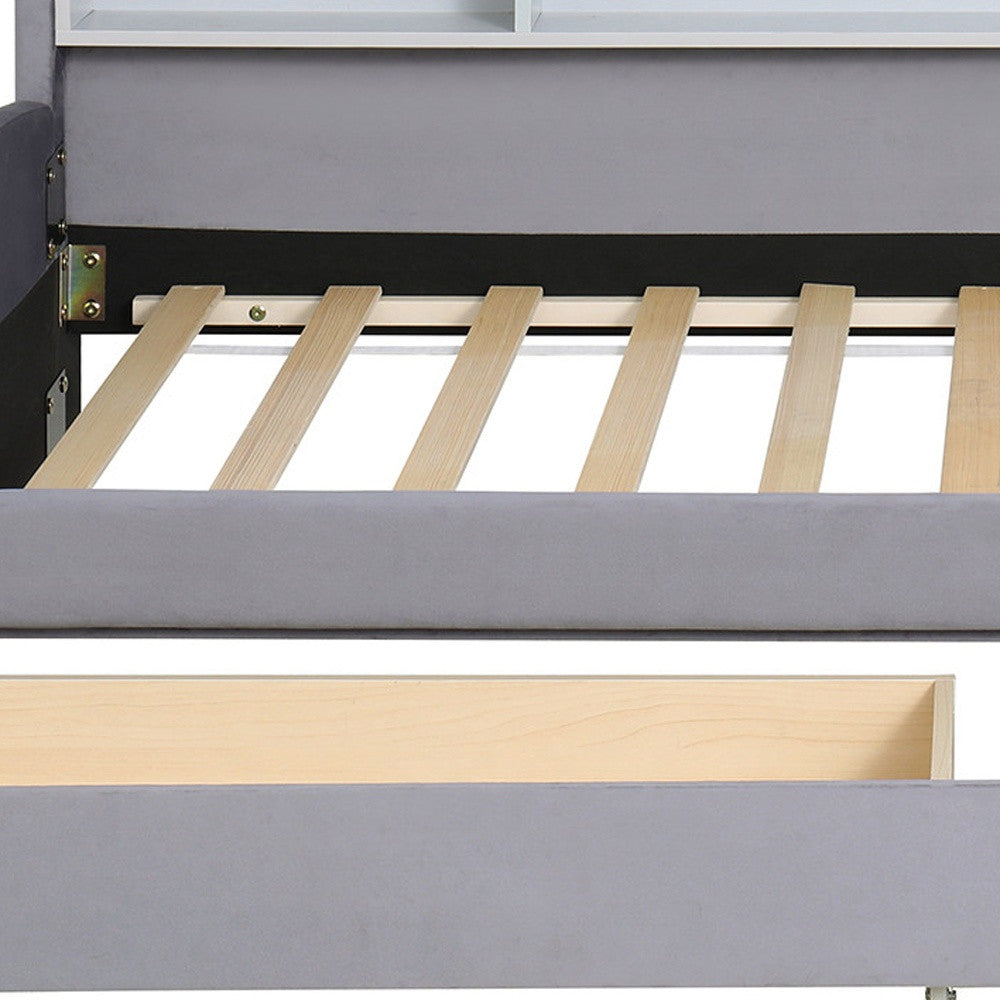 Gray Tufted Velvet Upholstered Twin Bed Frame With Drawers