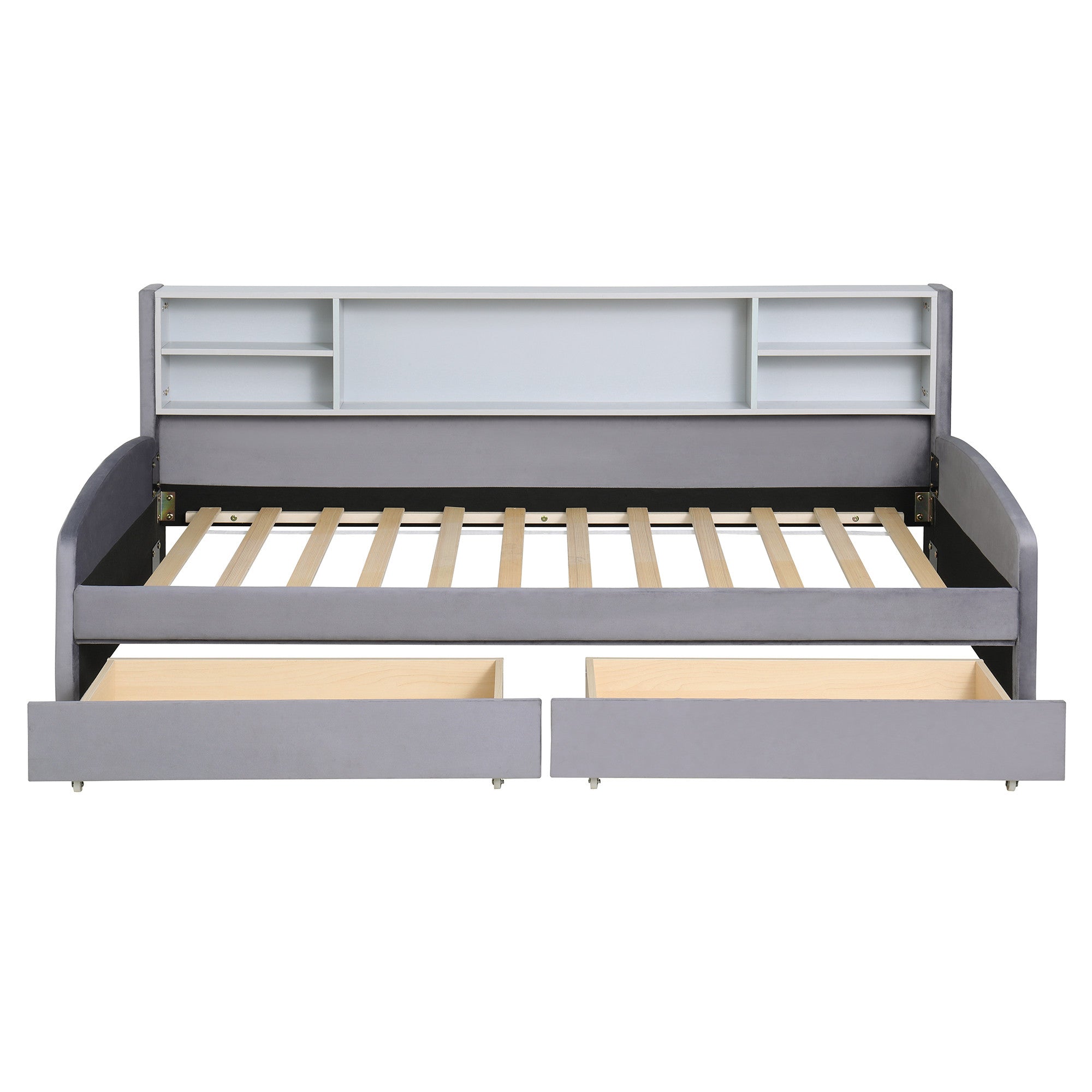Gray Tufted Velvet Upholstered Twin Bed Frame With Drawers - 跳到内容