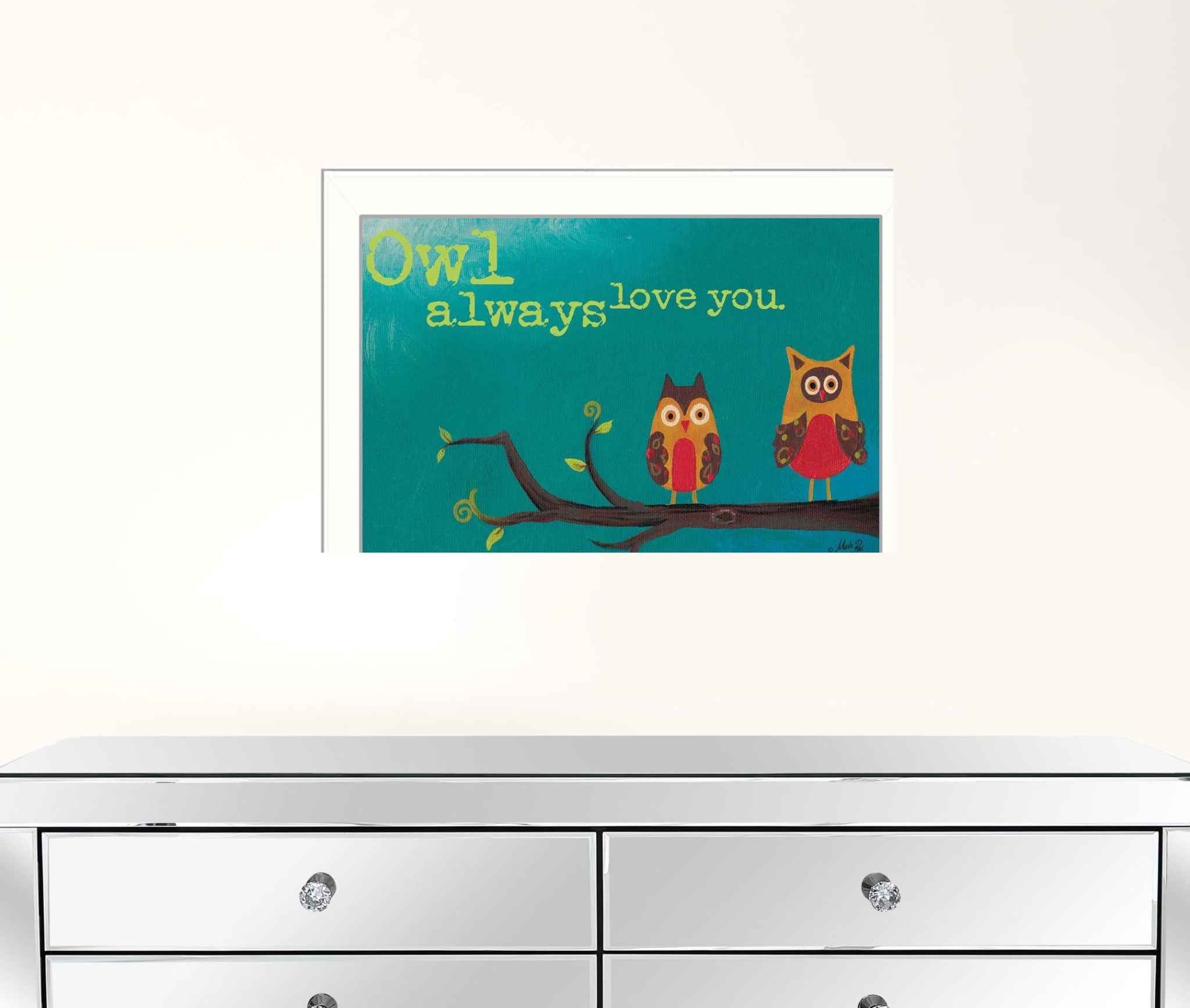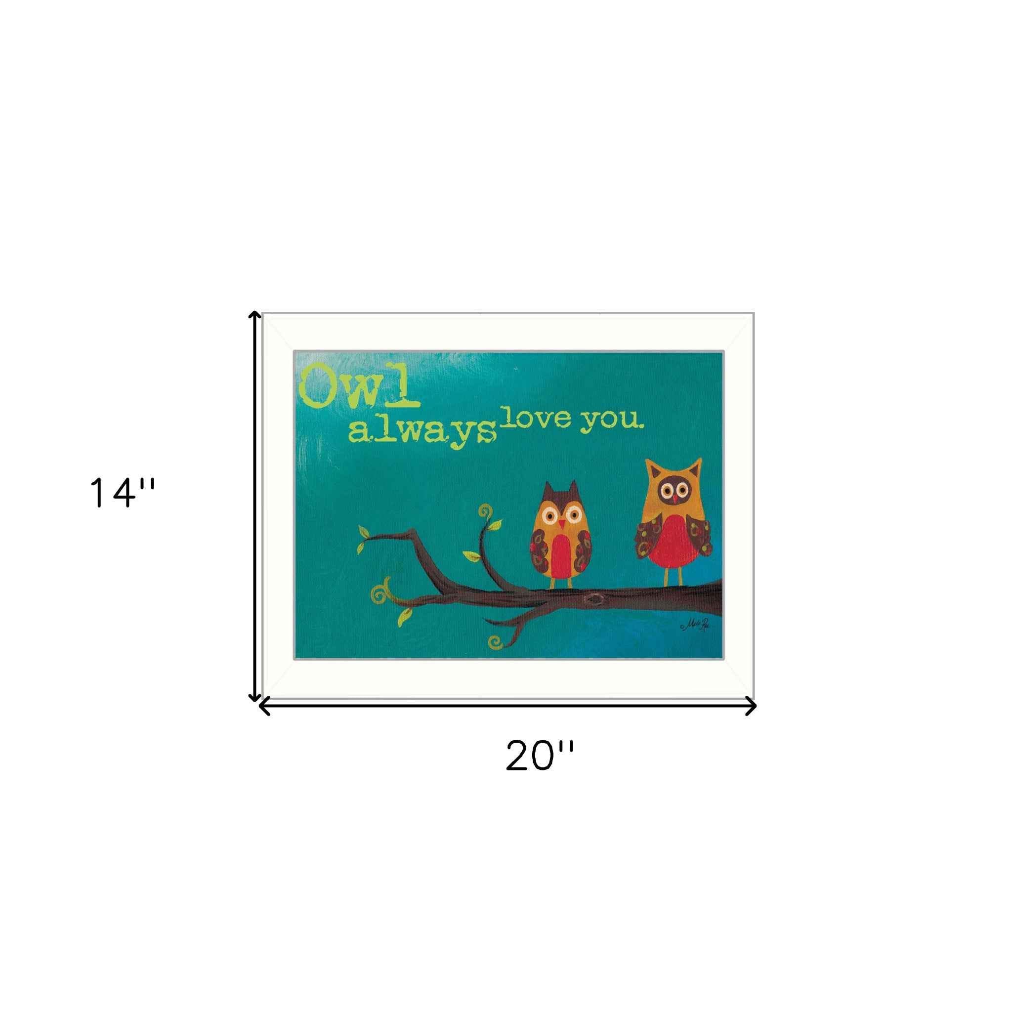 Add an air of fashion to your room and rejuvenate the space with this owl always love you 1 white framed print wall art. Add a sense of the woods, mountain or lodge lifestyle to your walls with this outdoorsy owl wall art. This print is a visual artistic expression that allows you to decorate your space in style. Reproduced for you on paper, this hanging decorative accent will be a trendy and fashionable way to dress your walls. Hang on your wall to add some up to date fashion and decoration. Utilize this opportunity to create a focal point in the room with this fabulous wall decor option. 20 inches H x 14 inches W x 1 inches D
