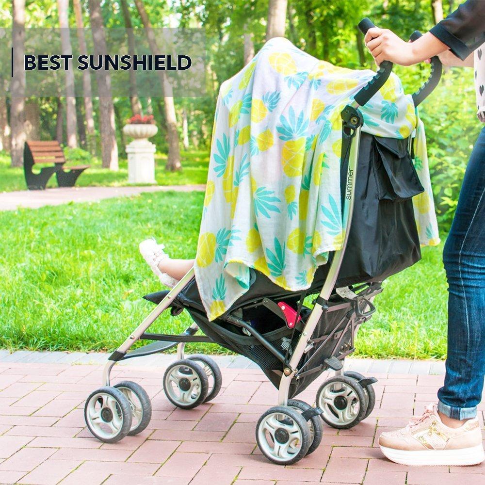 Muslin Swaddle Blanket Large 47 x47 Pineapple Print Super Soft Breathable Bamboo Cotton for Newborn Infant Baby Receiving Swaddling Blanket Wrap Boys Girls