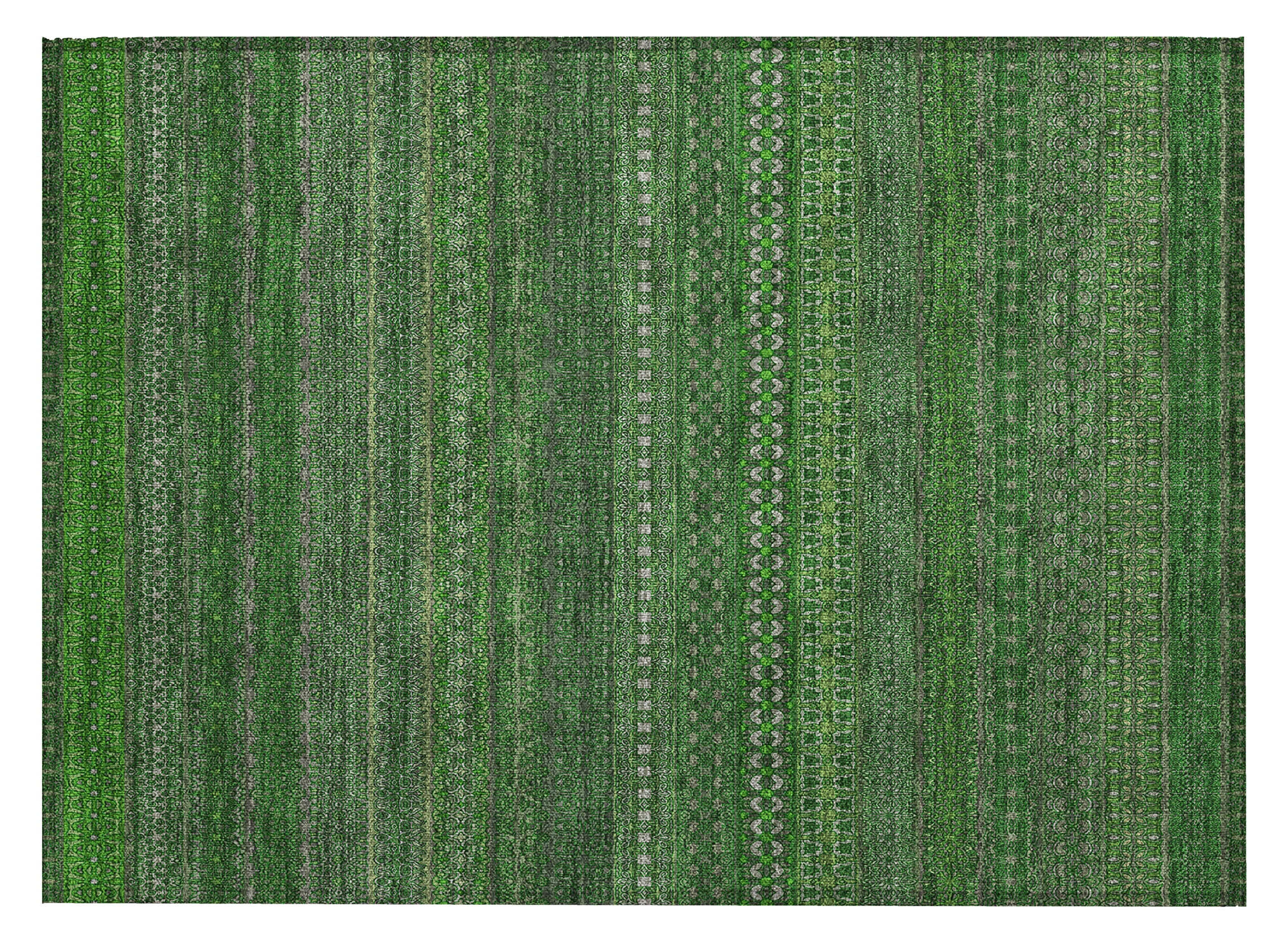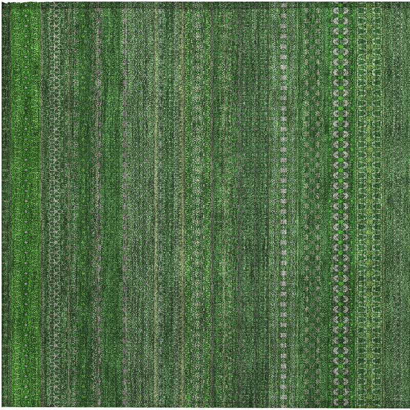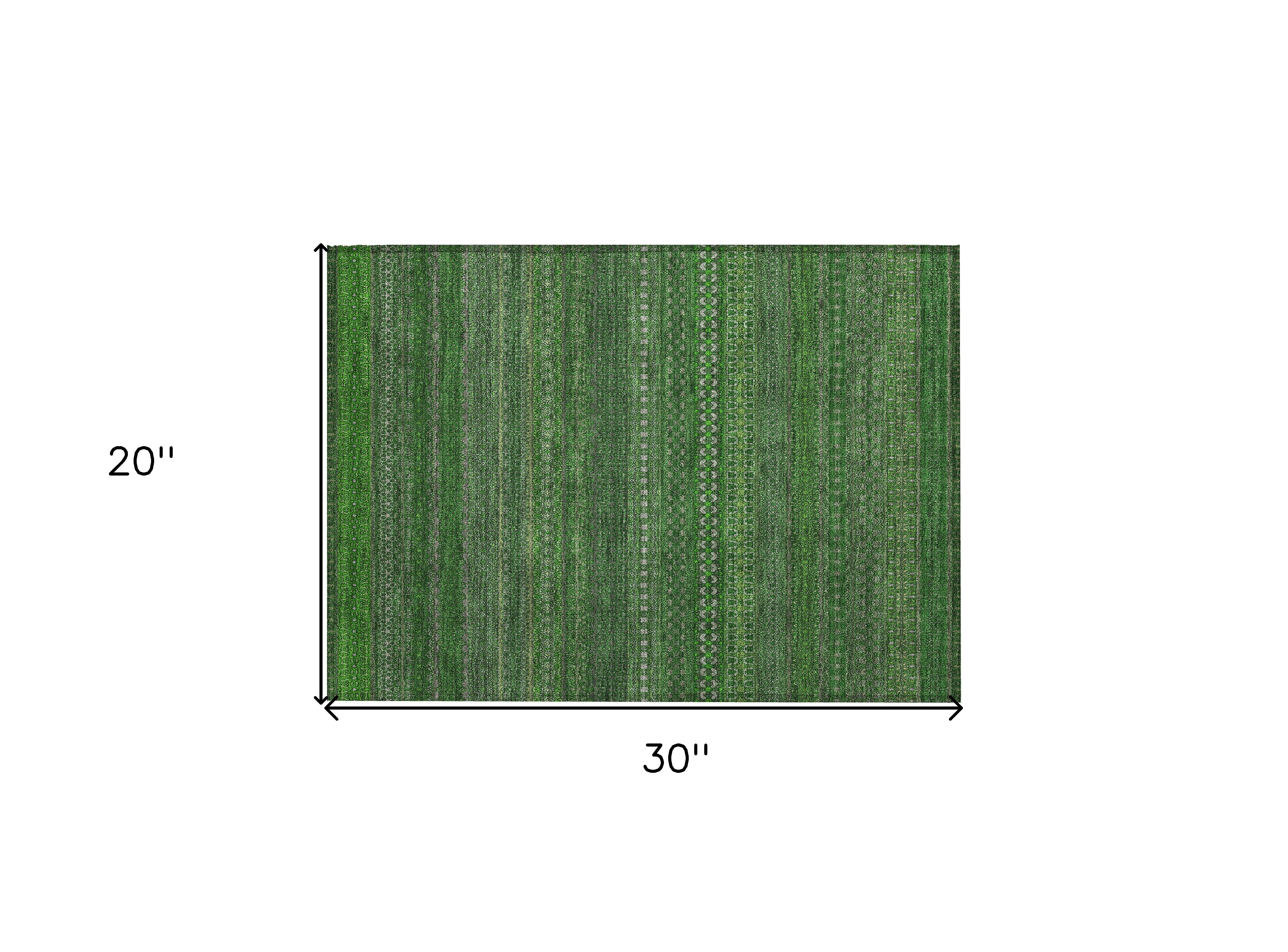 2' X 3' Fern Green Striped Washable Non Skid Indoor Outdoor Area Rug