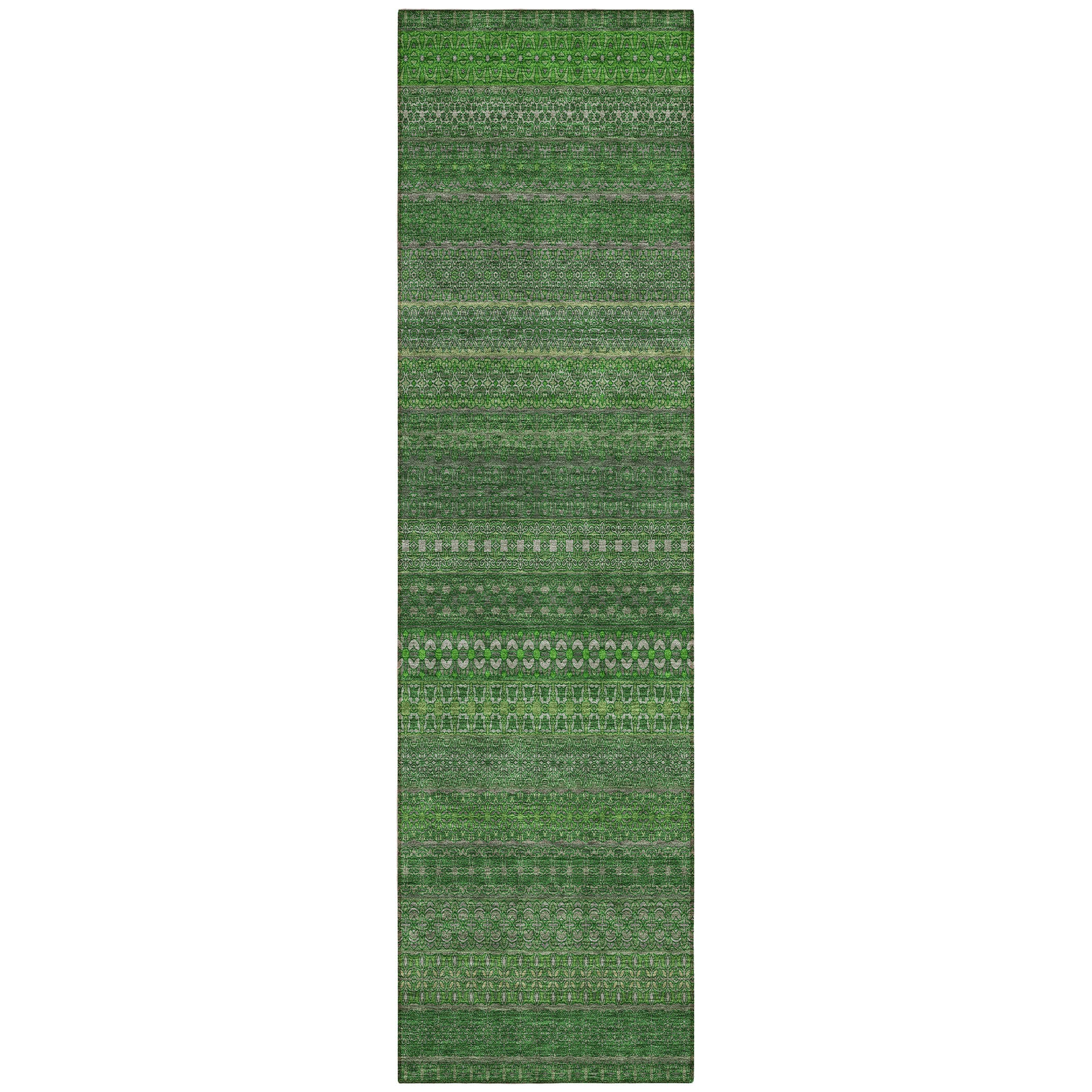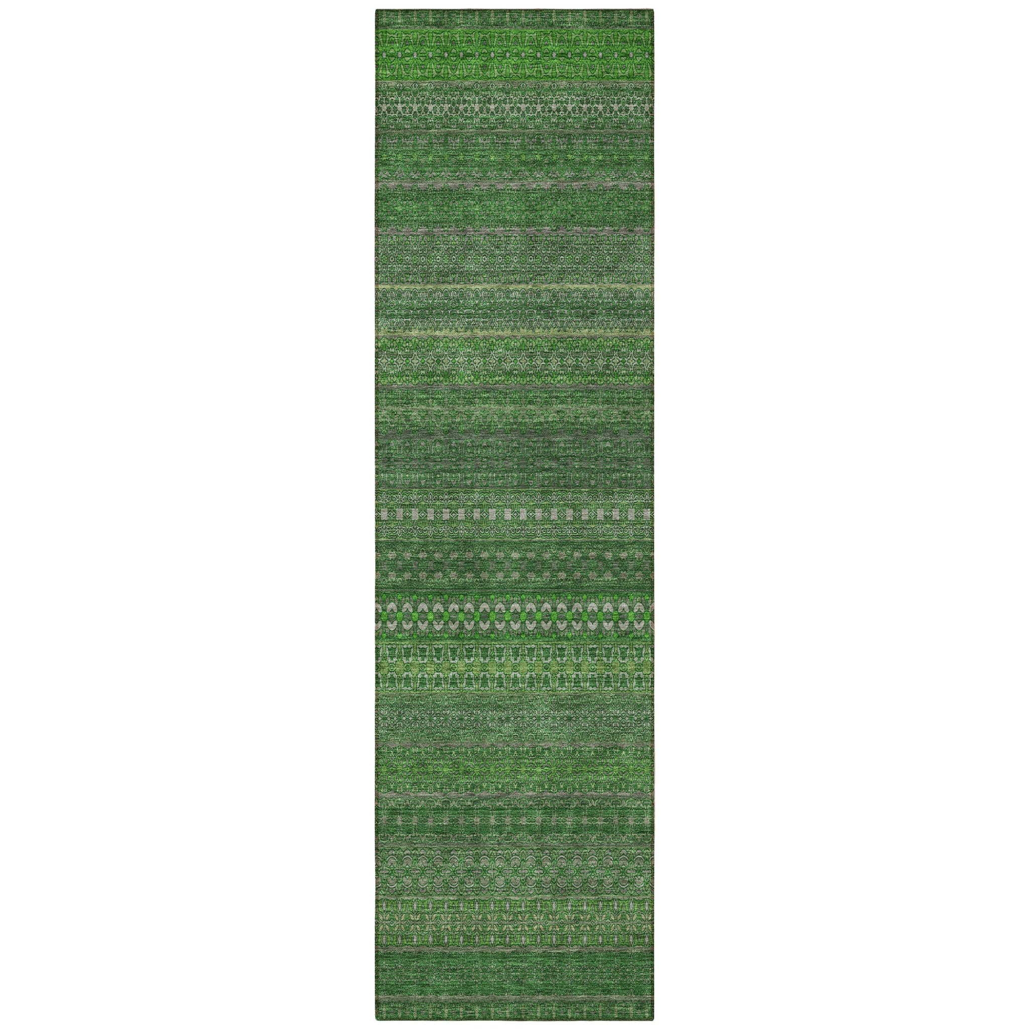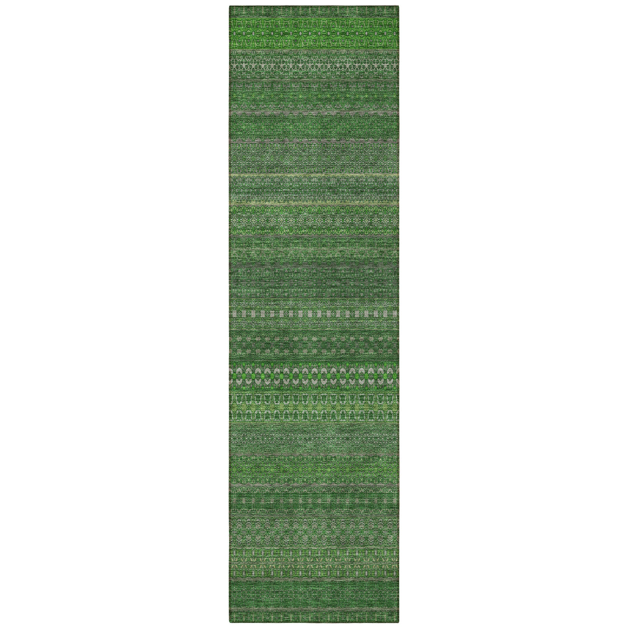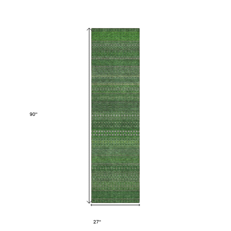 2' X 8' Fern Green Striped Washable Indoor Outdoor Runner Rug