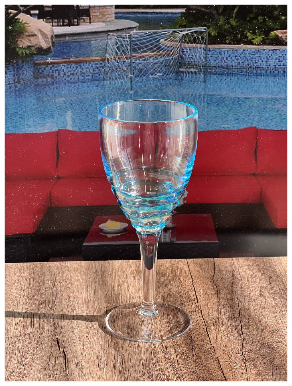 Set of Four Clear and Blue Swirl Acrylic Stemmed All Purpose Wine Glass