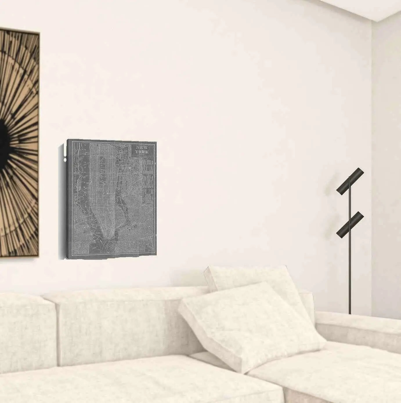 Unique and decorative, this 24 inches x 16 inches gray and white aerial new york map canvas wall art will leave a lasting impression. This print is a visual artistic expression that allows you to decorate your space in style. Reproduced for you on canvas, this hanging decorative accent will be a trendy and fashionable way to dress your walls. Adding this hanging wall art to your space to make your room feel more finished and attractive. Instantly liven up your space with this art that brings color and dimension to your walls. 24 inches H x 18 inches W x 1.25 inches D