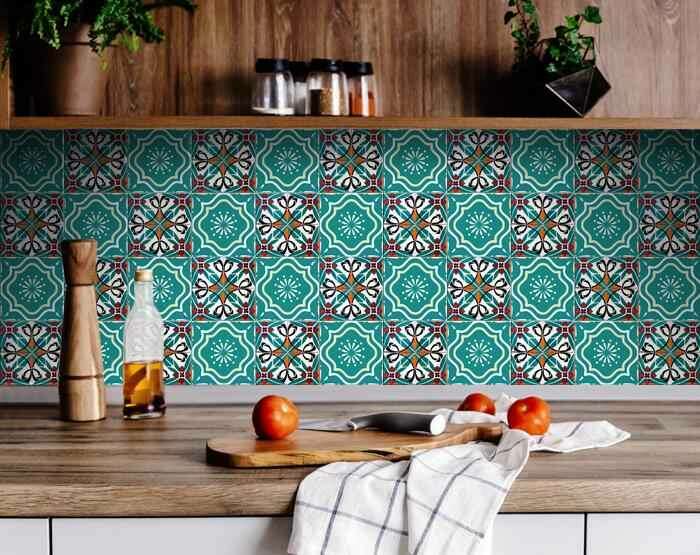 7" X 7" Turq And Terra Cotta Scroll Peel And Stick Removable Tiles