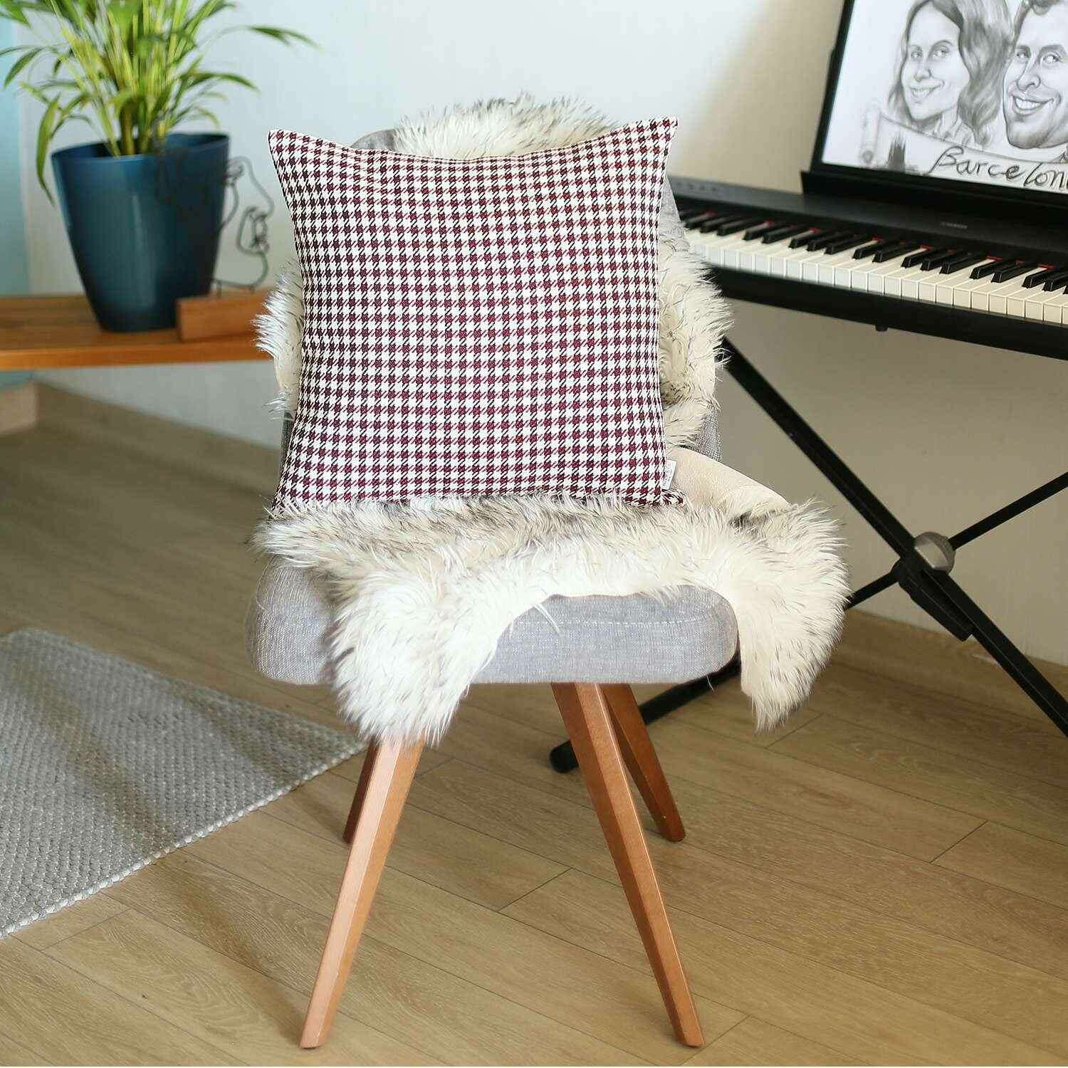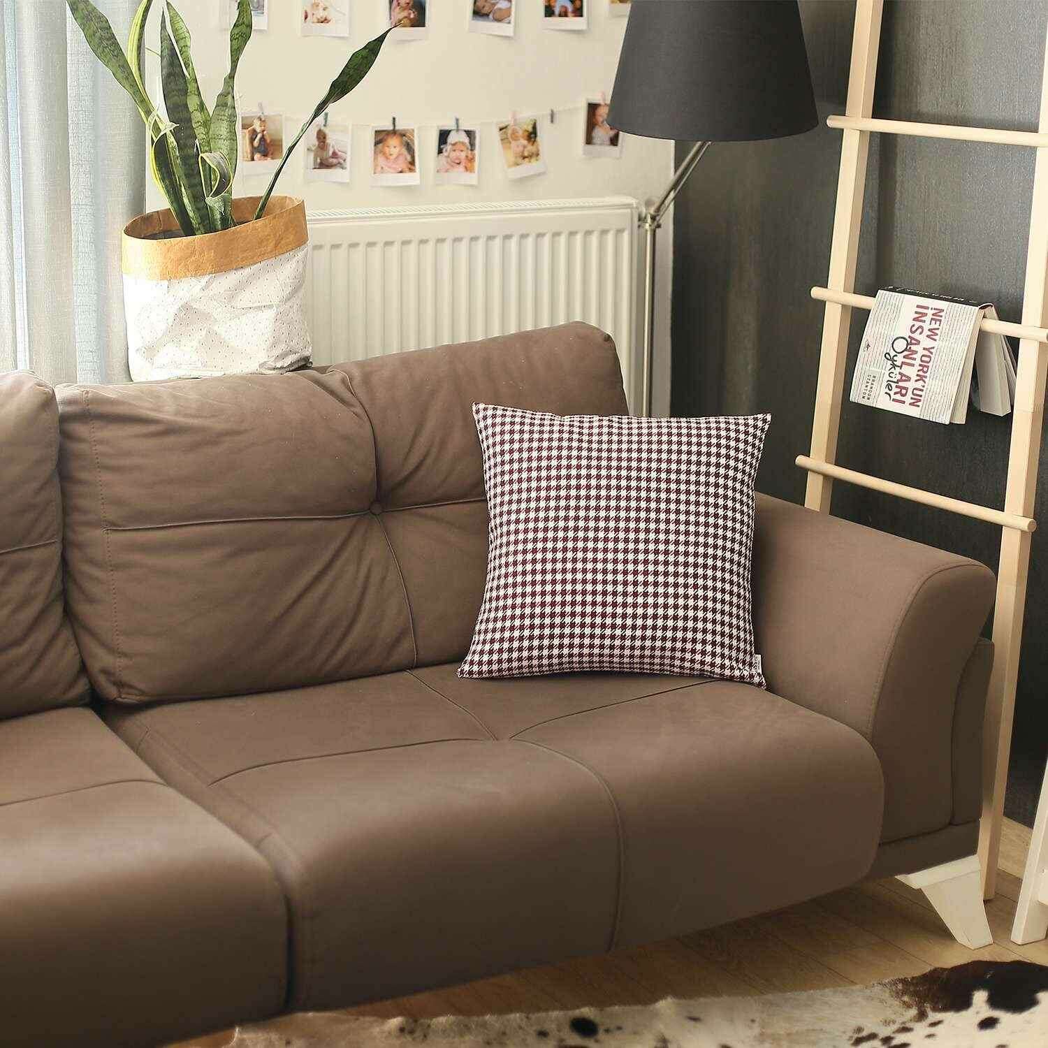 Decorate your living space with this Maroon Red Houndstooth Pattern Throw Pillow that adheres to a classic pattern with a subtle color palette. Beautifully designed with black and maroon red houndstooth patterns in jacquard weaving over a white base for a simple yet sophisticated look amidst any surrounding. Handmade in Turkey with 100% premium polyester fabric to ensure durability and color intensity while the OEKO-TEX Standard 100 certification speaks of its top-notch product quality and safety. The edges feel smooth and refined due to its hidden zipper closure while the soft poly filling contributes to its fluffy look and comfort. Aligning with the aesthetics of contemporary styling, this decorative throw pillow will add an understated elegance to your modern home. 18” x 18” x 1”