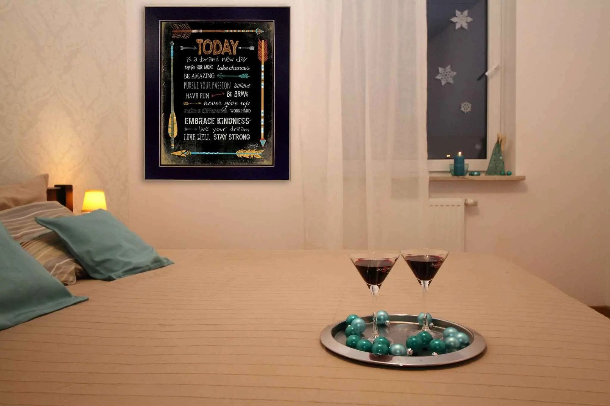 Add an air of fashion to your room and rejuvenate the space with this today is a brand new day 3 black framed print wall art. This print is a visual artistic expression that allows you to decorate your space in style. Reproduced for you on paper, this hanging decorative accent will be a trendy and fashionable way to dress your walls. Hang on your wall to add some up to date fashion and decoration. Utilize this opportunity to create a focal point in the room with this fabulous wall decor option. 26 inches H x 20 inches W x 1 inches D