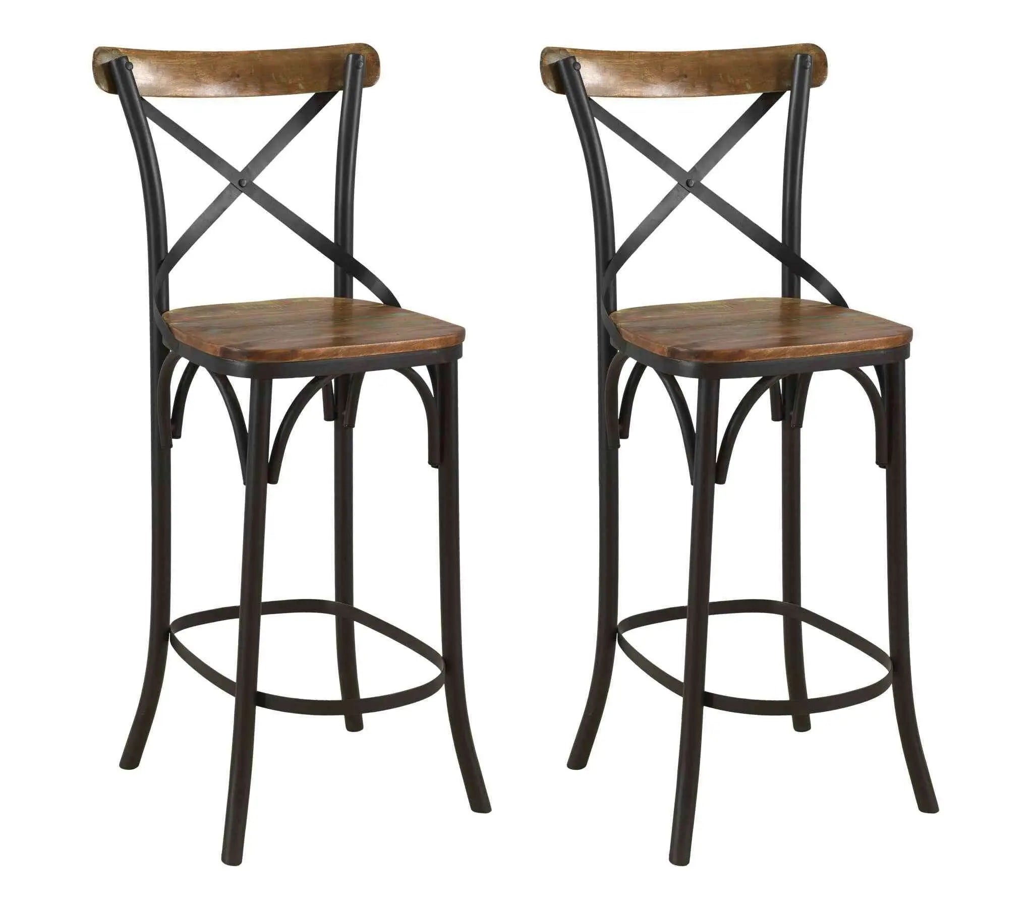 30" Brown and Black Solid Wood and Metal Counter Height Bar Chair
