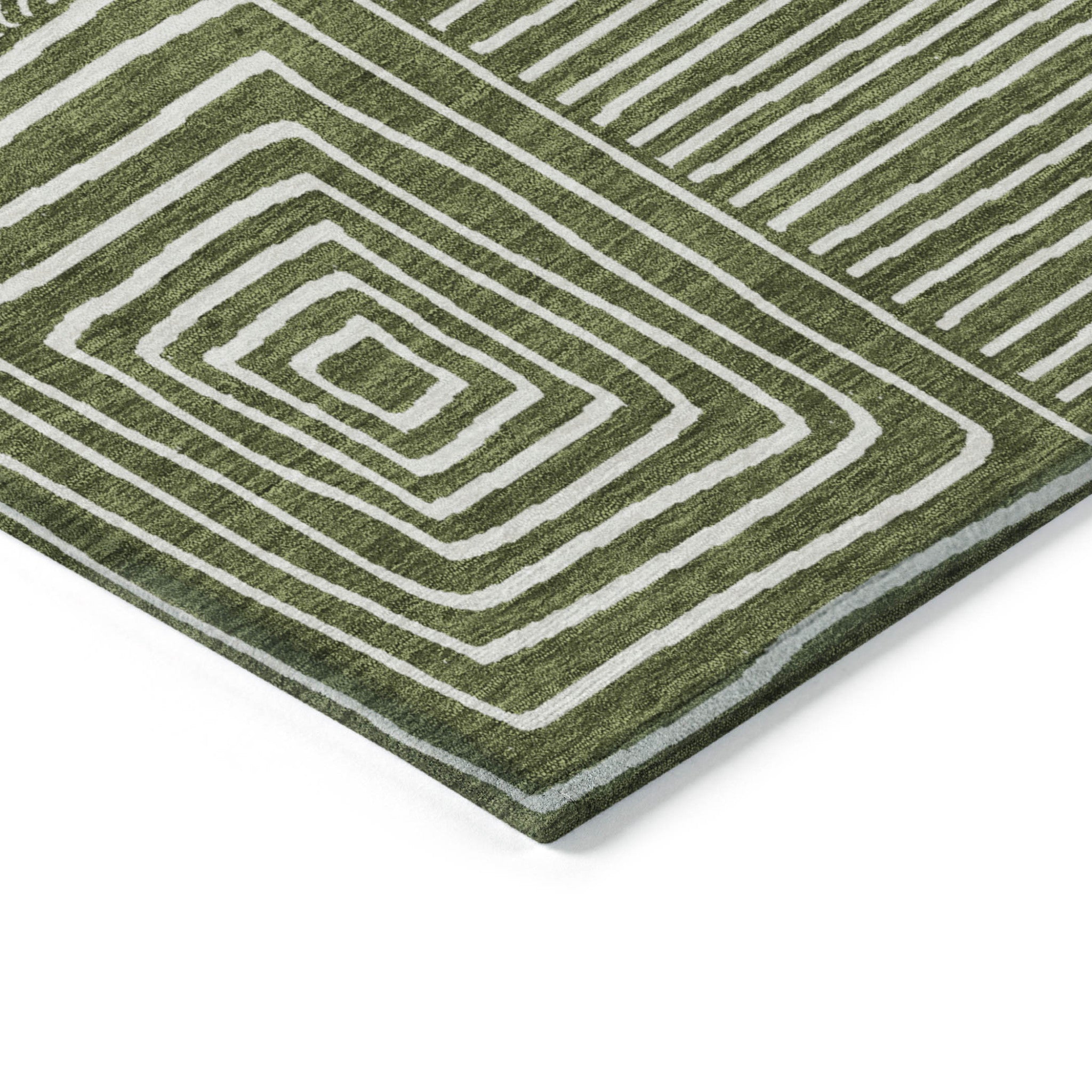 5' X 8' Olive Green And Ivory Geometric Washable Indoor Outdoor Area Rug