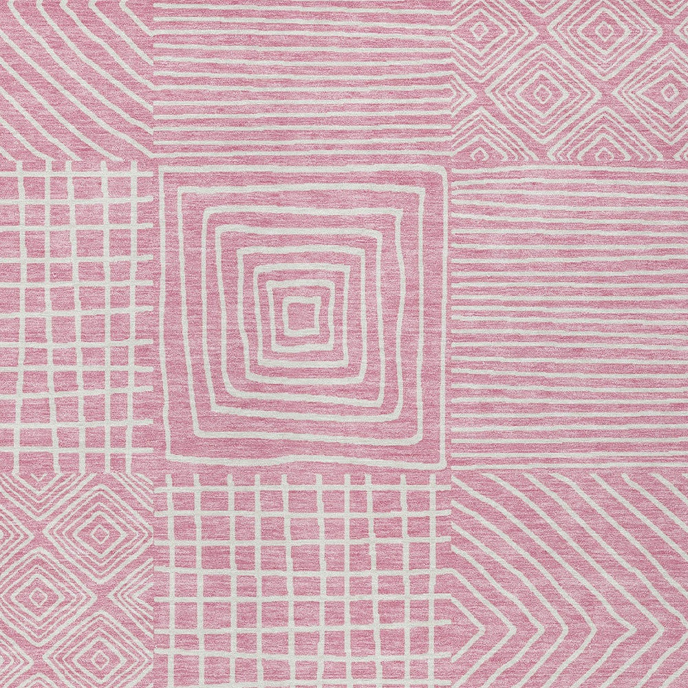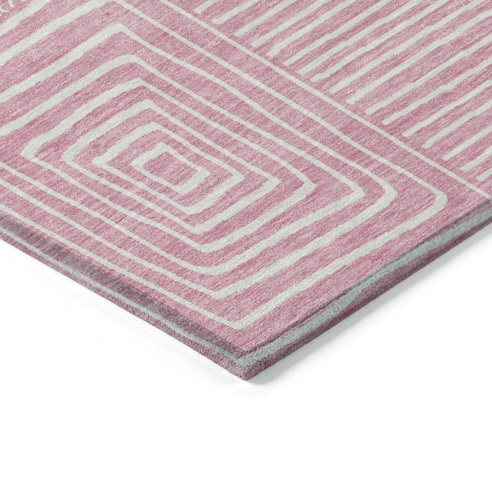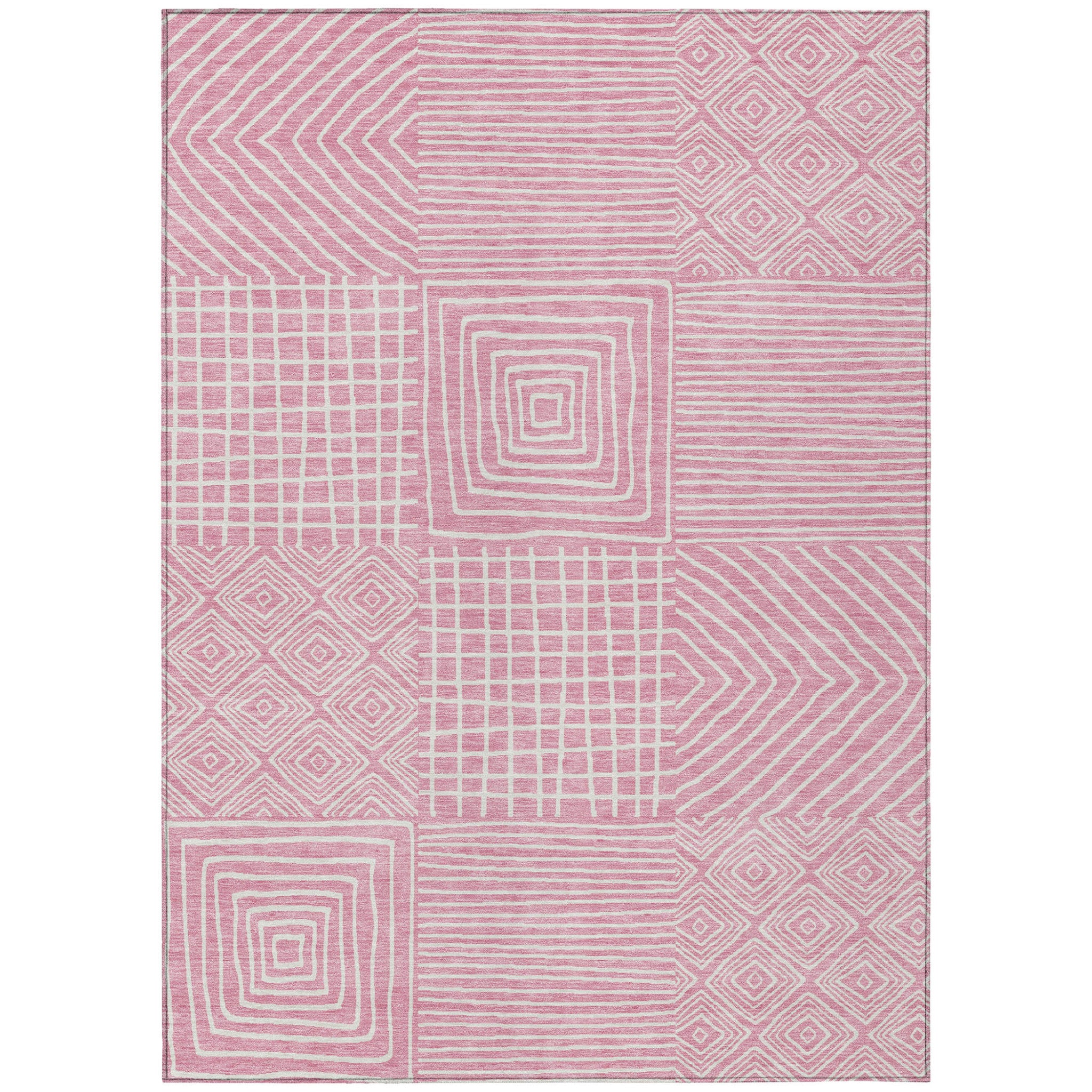 5' X 8' Pink And Ivory Geometric Washable Indoor Outdoor Area Rug
