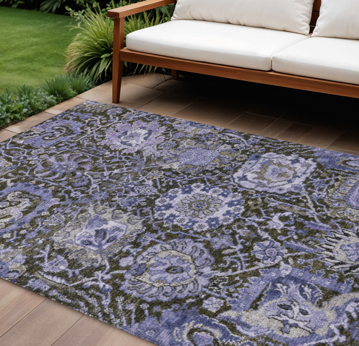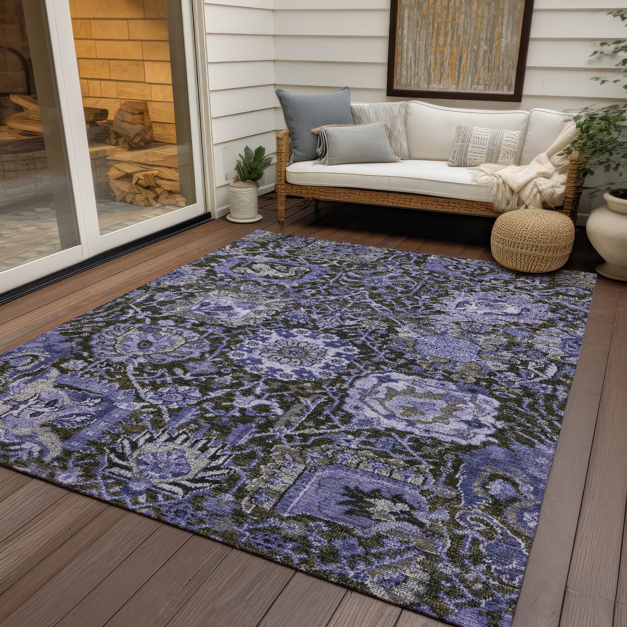 8' X 10' Purple And Black Damask Washable Indoor Outdoor Area Rug - 跳到内容