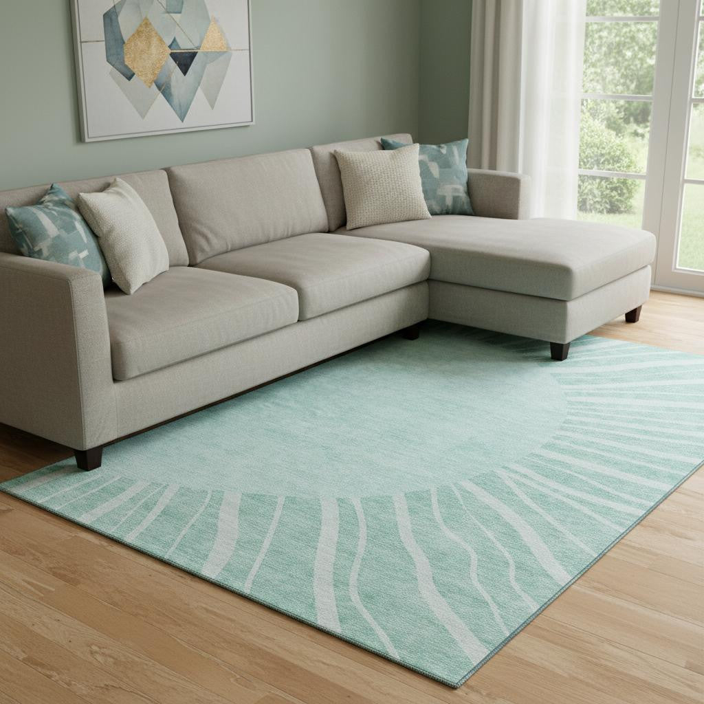 10' X 14' Teal And Ivory Abstract Washable Area Rug With UV Protection
